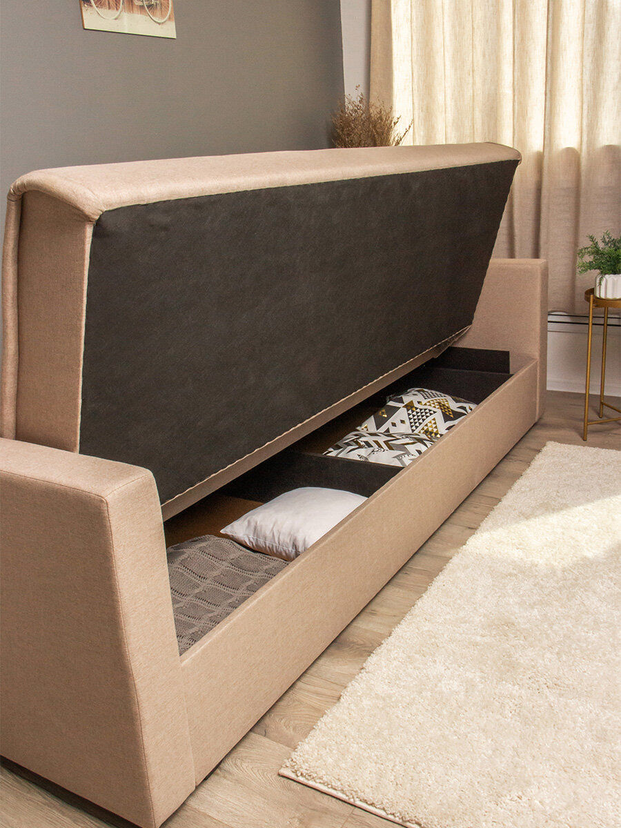 Диван кровать раскладной с подлокотниками и ящиком, 217х100х91 см, Бежевый Лагуна 130 интересное: