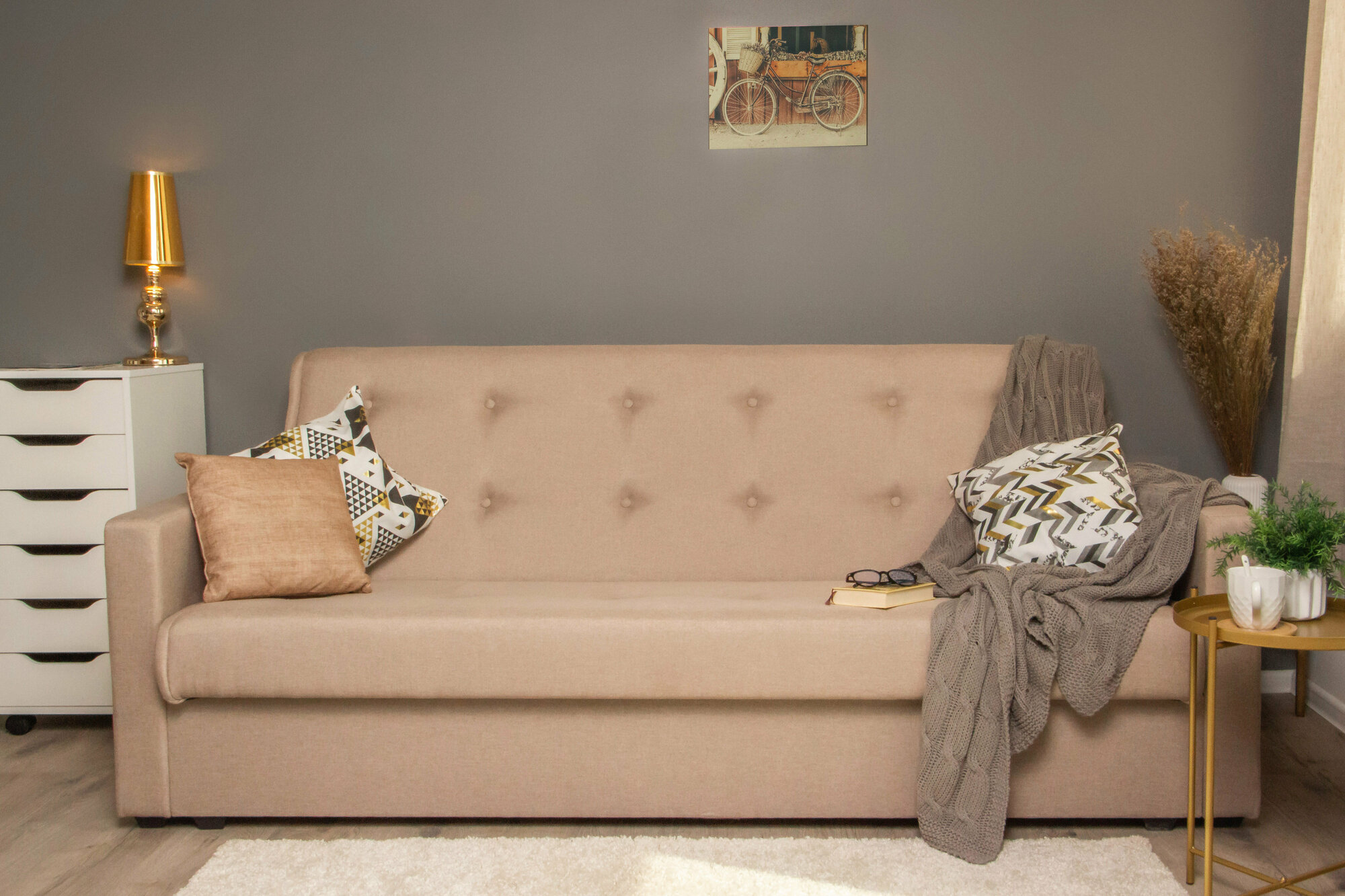 | Дополнительная информация | Плед и декоративные подушки в комплект не входят и представлены для композиции. |