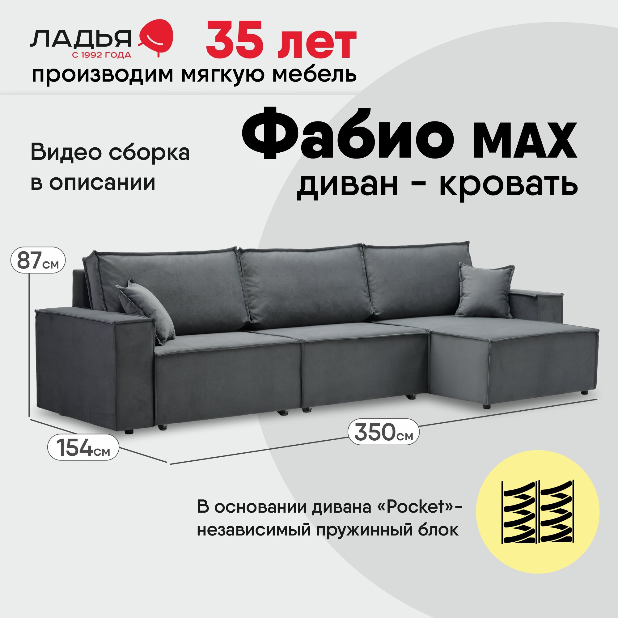 Угловой диван Фабио MAX, размер: 350х154х87см, спальное место: 200х157см, велюр Киви 91 интересное: