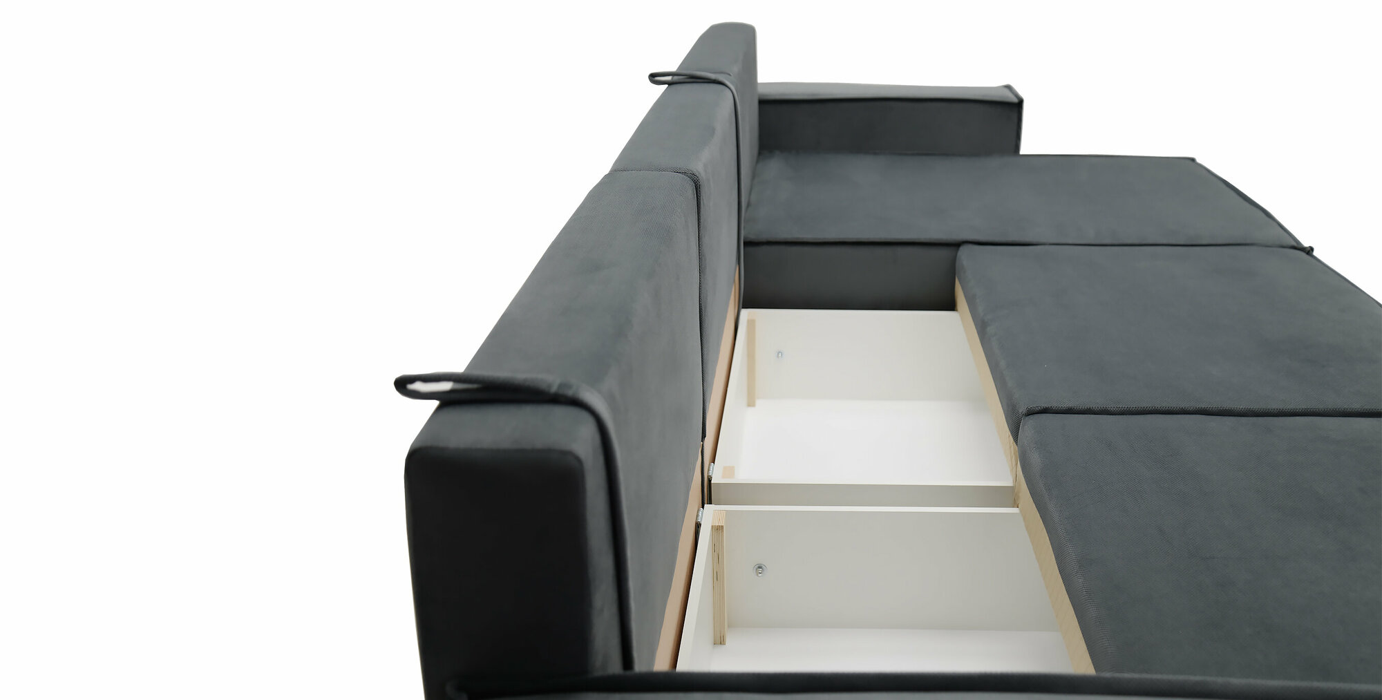 | Особенности | пружинный блок, раскладная конструкция, с подлокотниками, съемные подушки, ящик для белья |