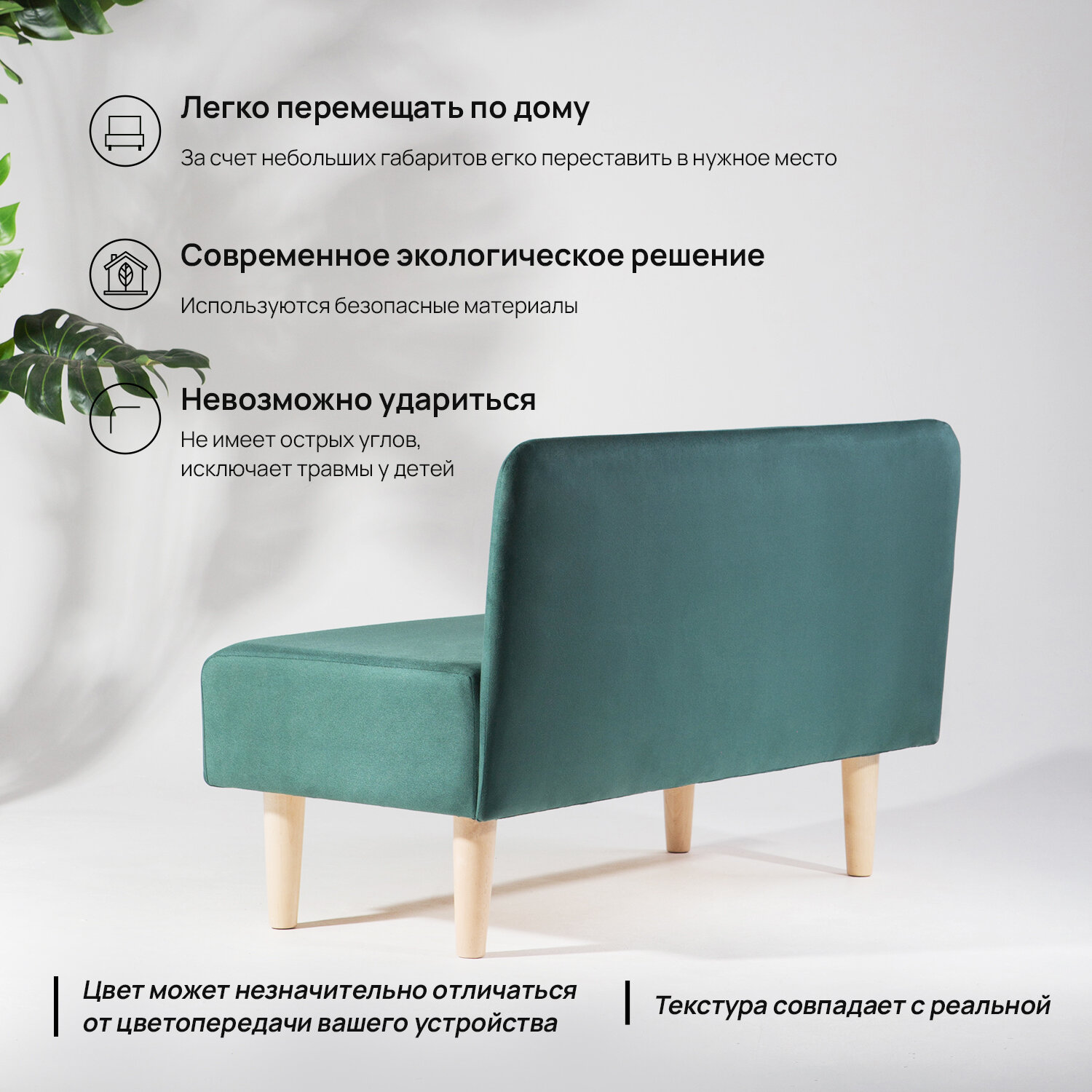СохранитьДиван, RAKIZA mini, велюр, на кухню, в офис, в прихожую, банкетка, на балкон, в детскую, мини, в салон красоты, прямой, зелёный (Ш110-Г50-В70 см). интересное: