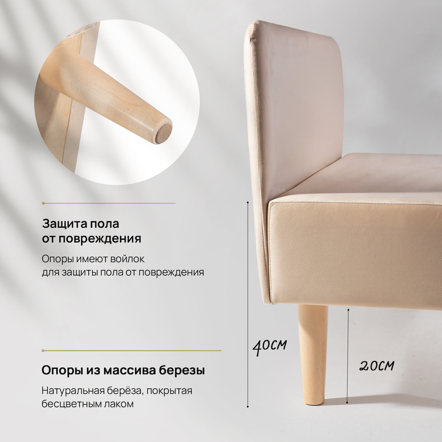 Купить Диван, RAKIZA mini, велюр, на кухню, в офис, в прихожую, банкетка, на балкон, в детскую, мини, в салон красоты, прямой, бежевый, (Ш110-Г50-В70 см).