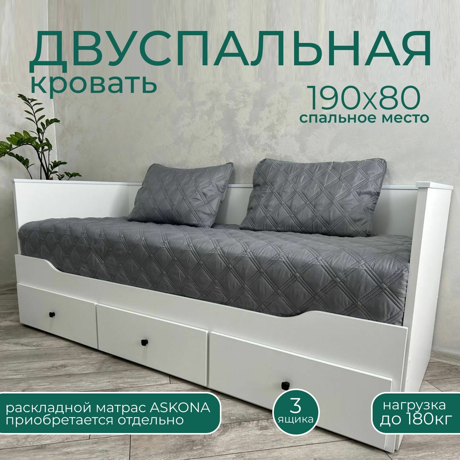 Кровать раздвижная односпальная/двуспальная 190*90 или 190*180 см с выдвижными ящиками