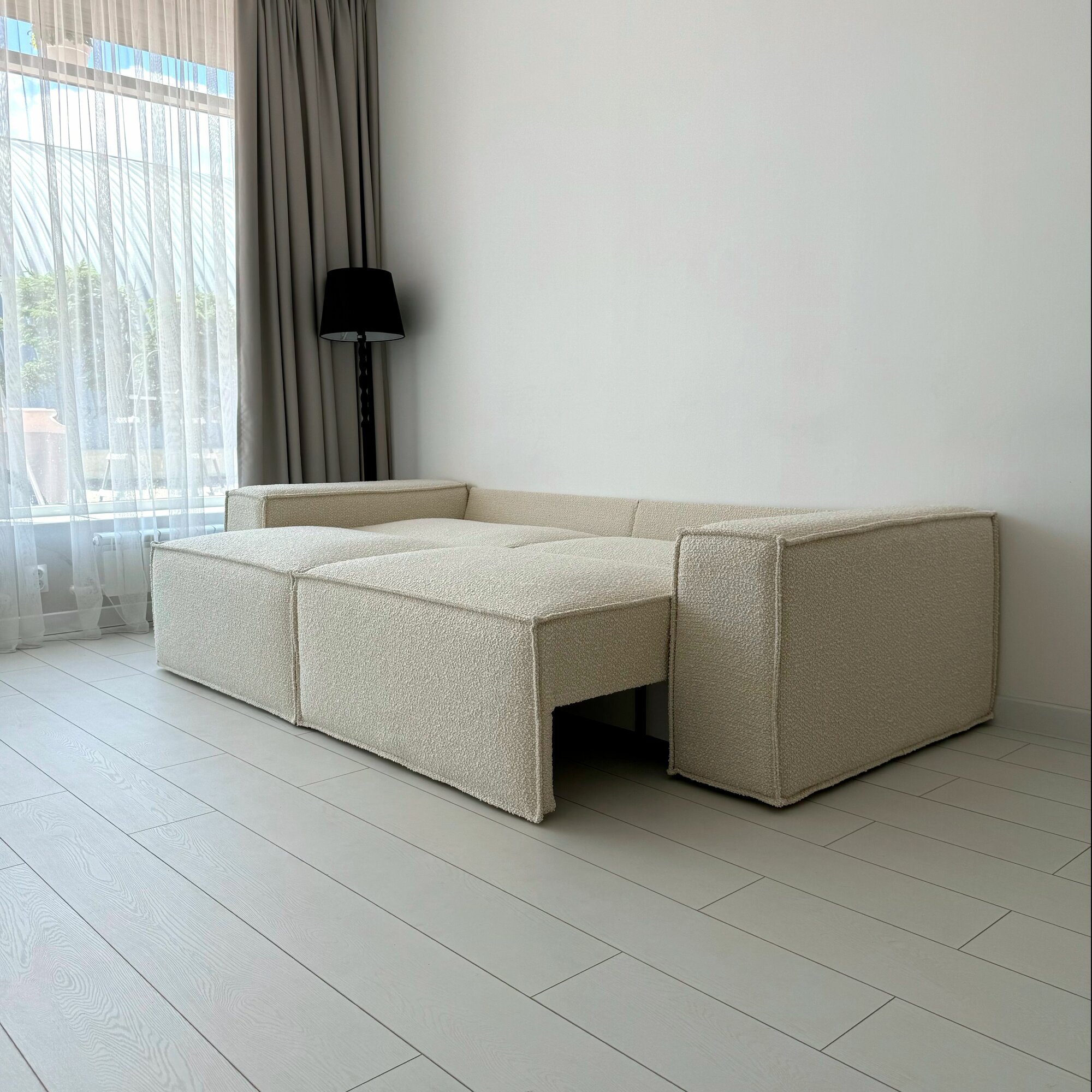 Купить Диван-кровать Redsofa Пикассо 260 см Букле белый. Раскладной прямой диван со съемными чехлами, для дома и офиса.