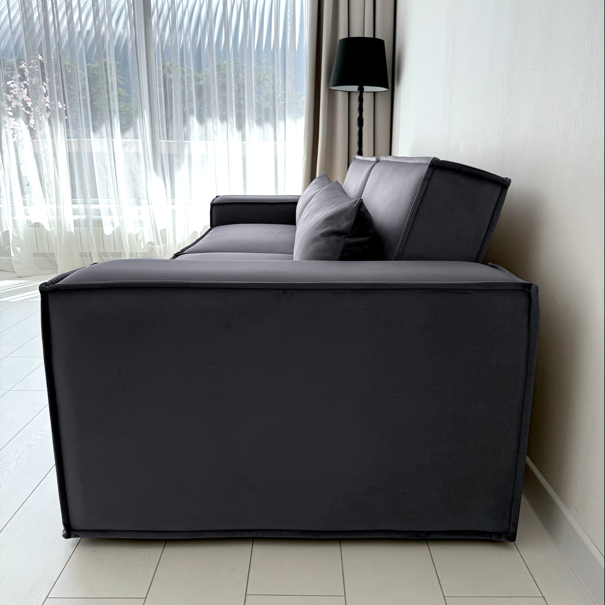 Диван-кровать Redsofa Пикассо 260 см графит Teddi. Раскладной прямой диван со съемными чехлами, для дома и офиса.