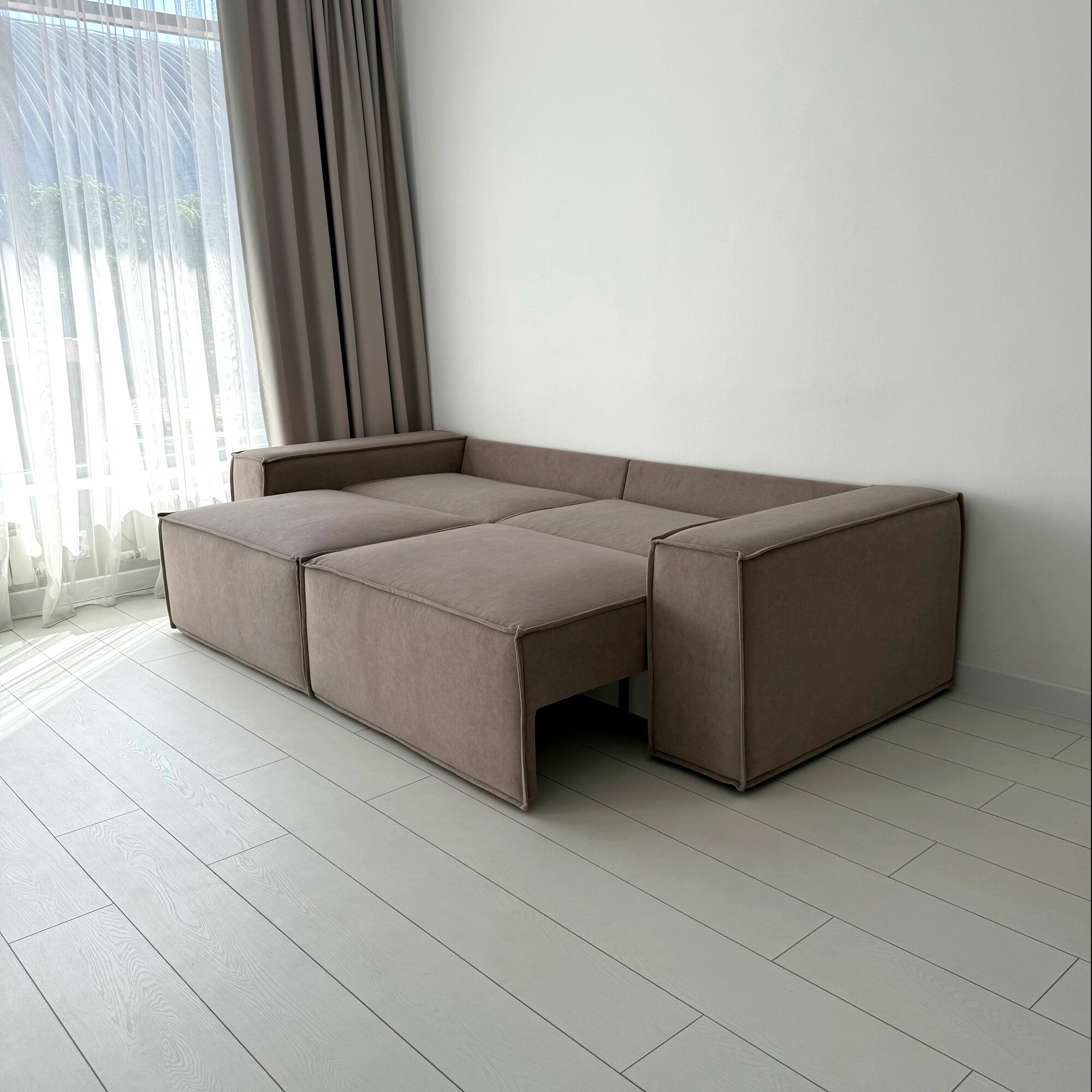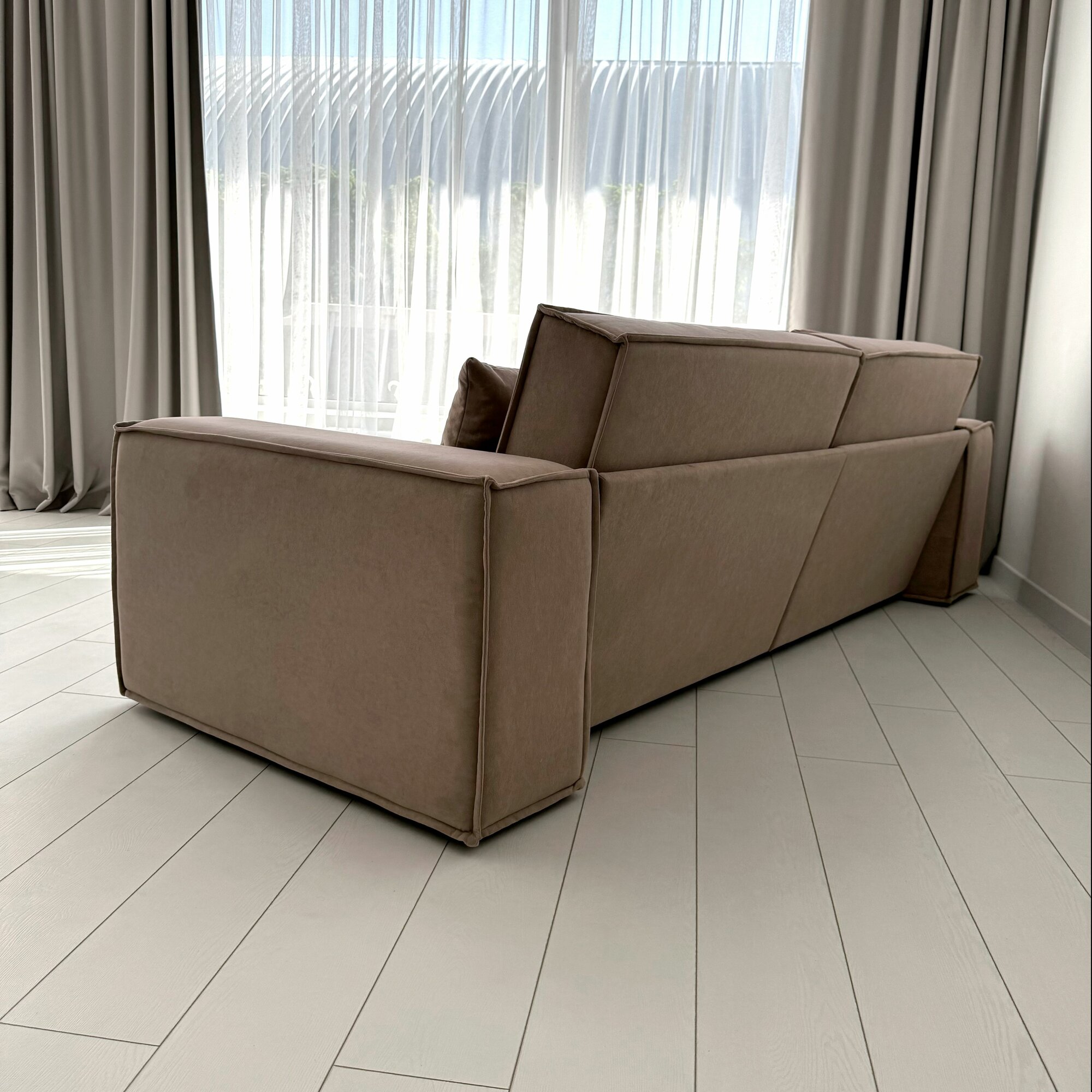 Диван-кровать Redsofa Пикассо 260 см темно-бежевый антивандальный. Раскладной прямой диван со съемными чехлами, для дома и офиса.