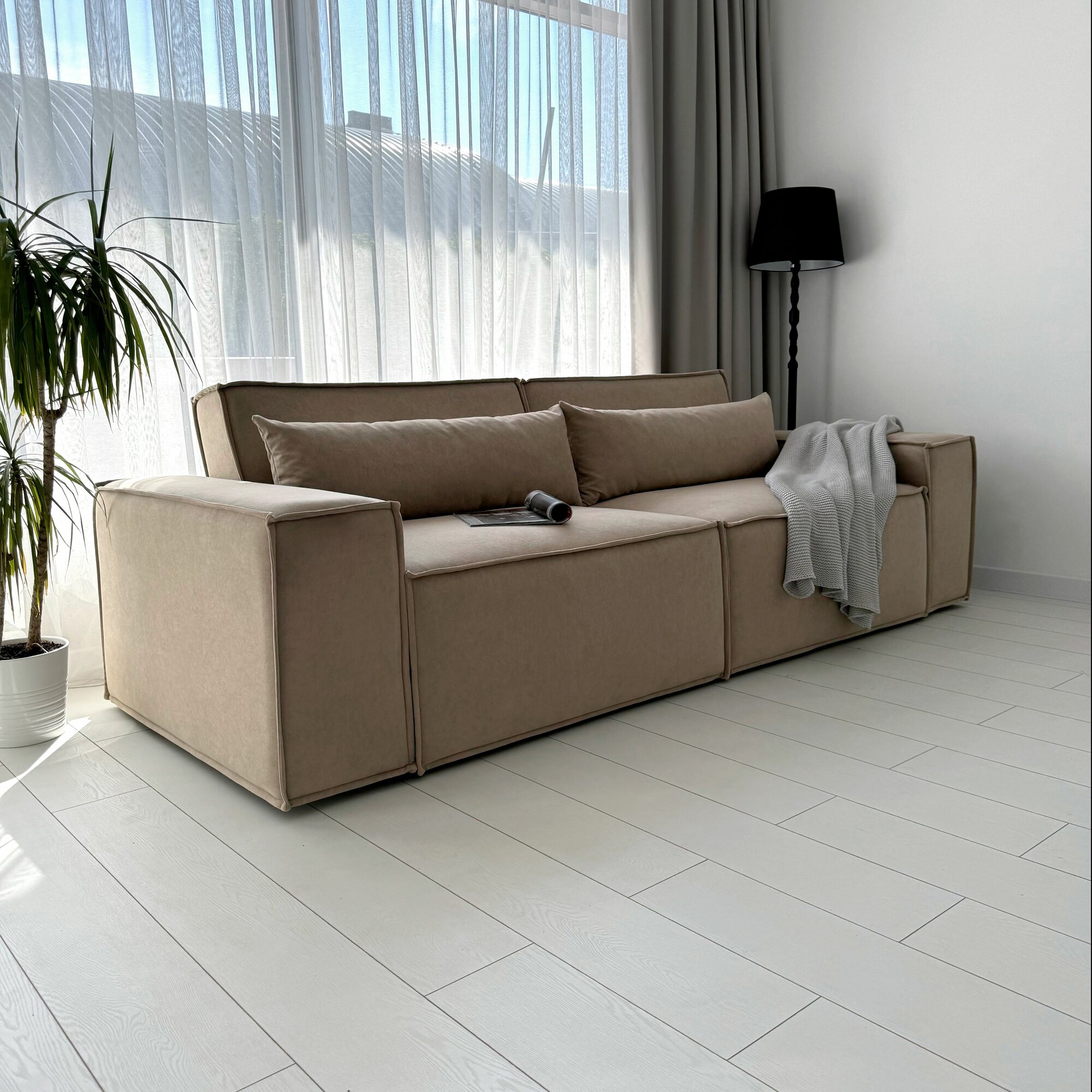 Диван-кровать Redsofa Пикассо 260 см светло-бежевый Ocean. Раскладной прямой диван со съемными чехлами, для дома и офиса.