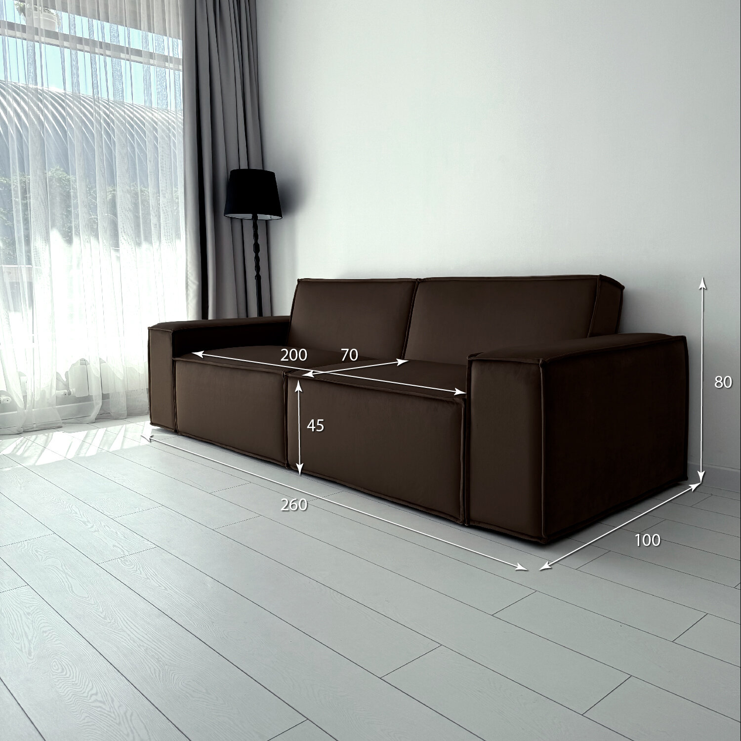 Диван-кровать Redsofa Пикассо 260 см темно-коричневый Teddi. Раскладной прямой диван со съемными чехлами, для дома и офиса.