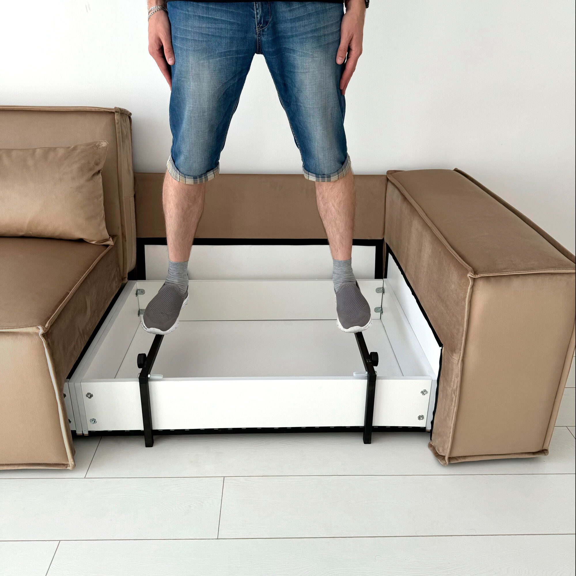 | Особенности | антивандальная обивка, модульный, пружинный блок, раскладная конструкция, с подлокотниками, съемный чехол, ящик для белья |