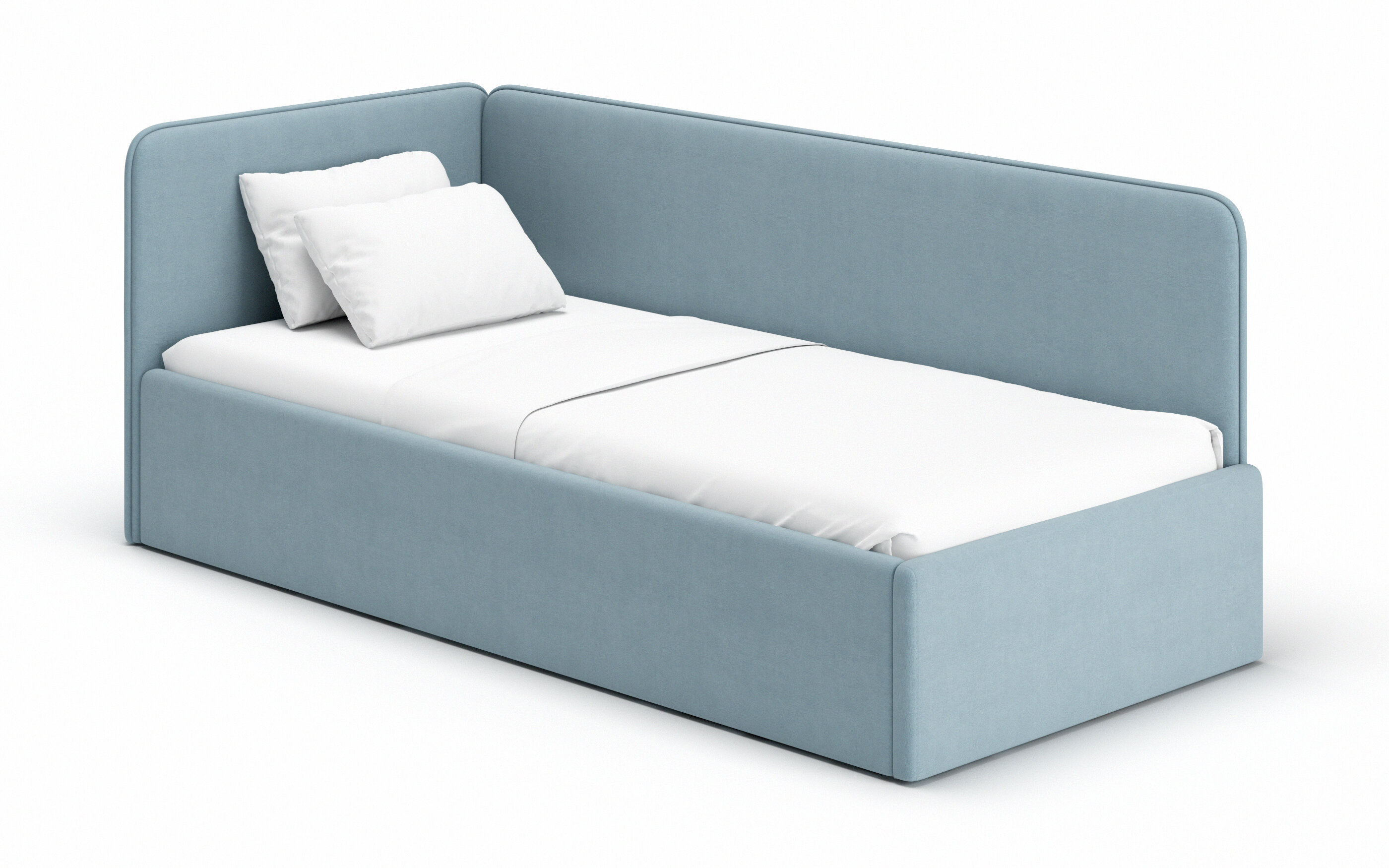 Купить Кровать - диван Romack Leonardo 70х160 голубой с ящиком для белья боковой спинкой мягким изголовьем односпальная