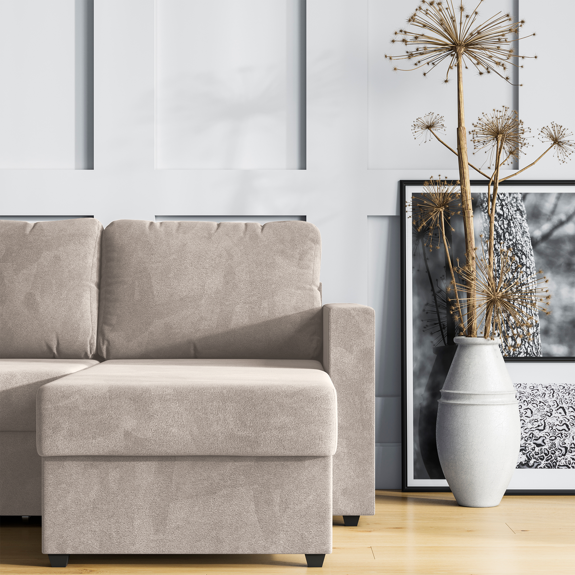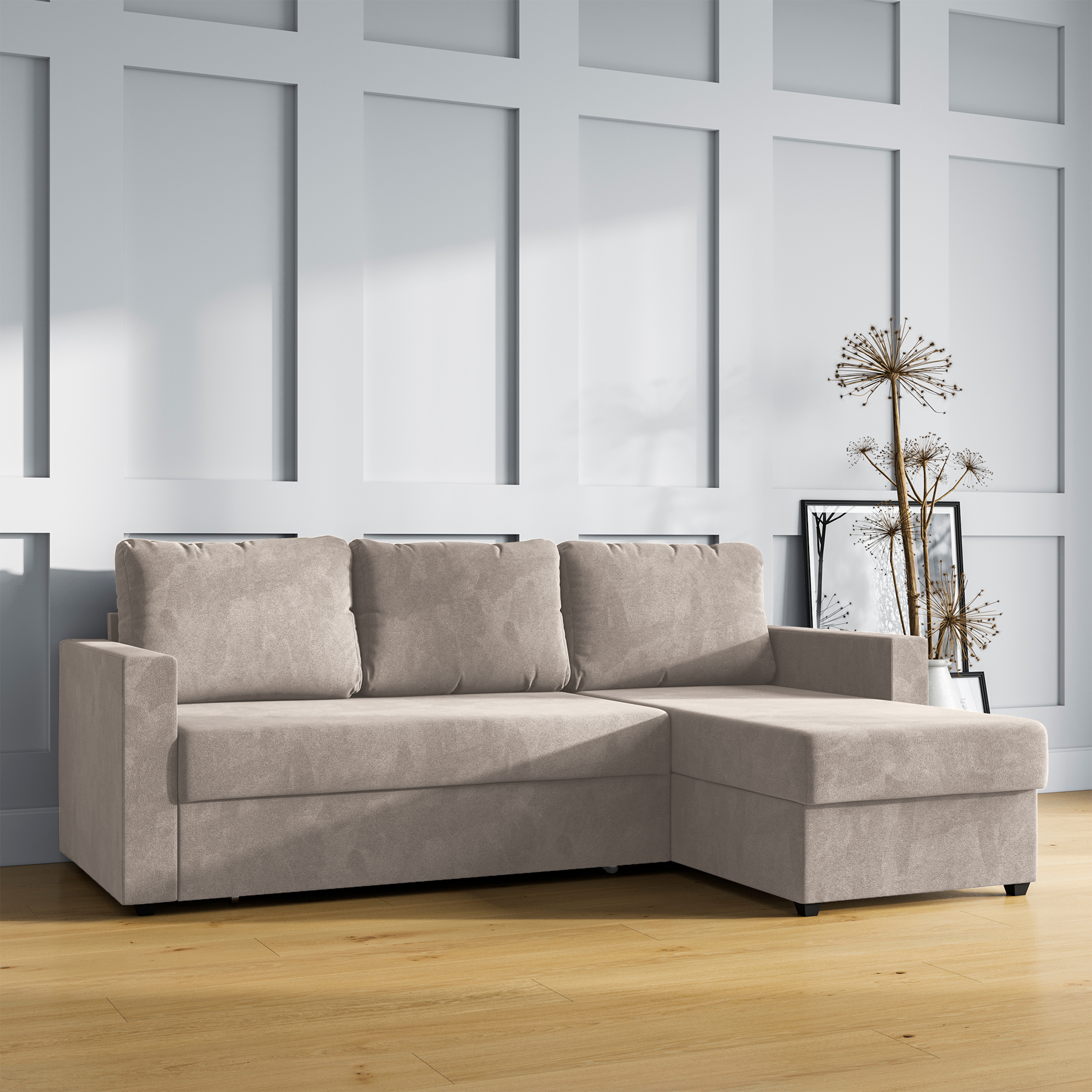 Купить Угловой диван-кровать, HYPNOZ Denver, механизм Дельфин, Светло-бежевый, 221х153х85 см