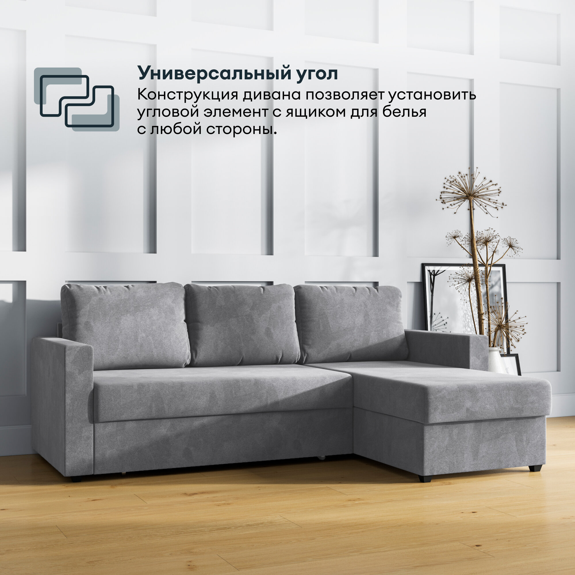СохранитьУгловой диван-кровать, HYPNOZ Denver, механизм Дельфин, Светло-серый, 221х153х85 см интересное: