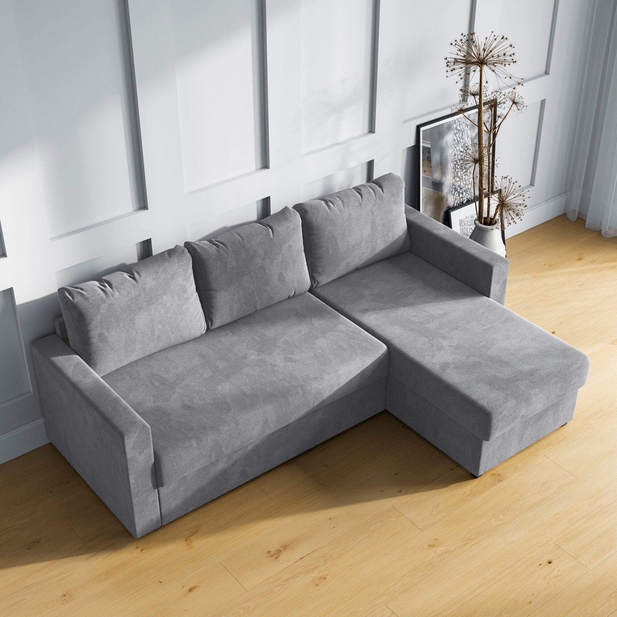 Купить Угловой диван-кровать, HYPNOZ Denver, механизм Дельфин, Светло-серый, 221х153х85 см