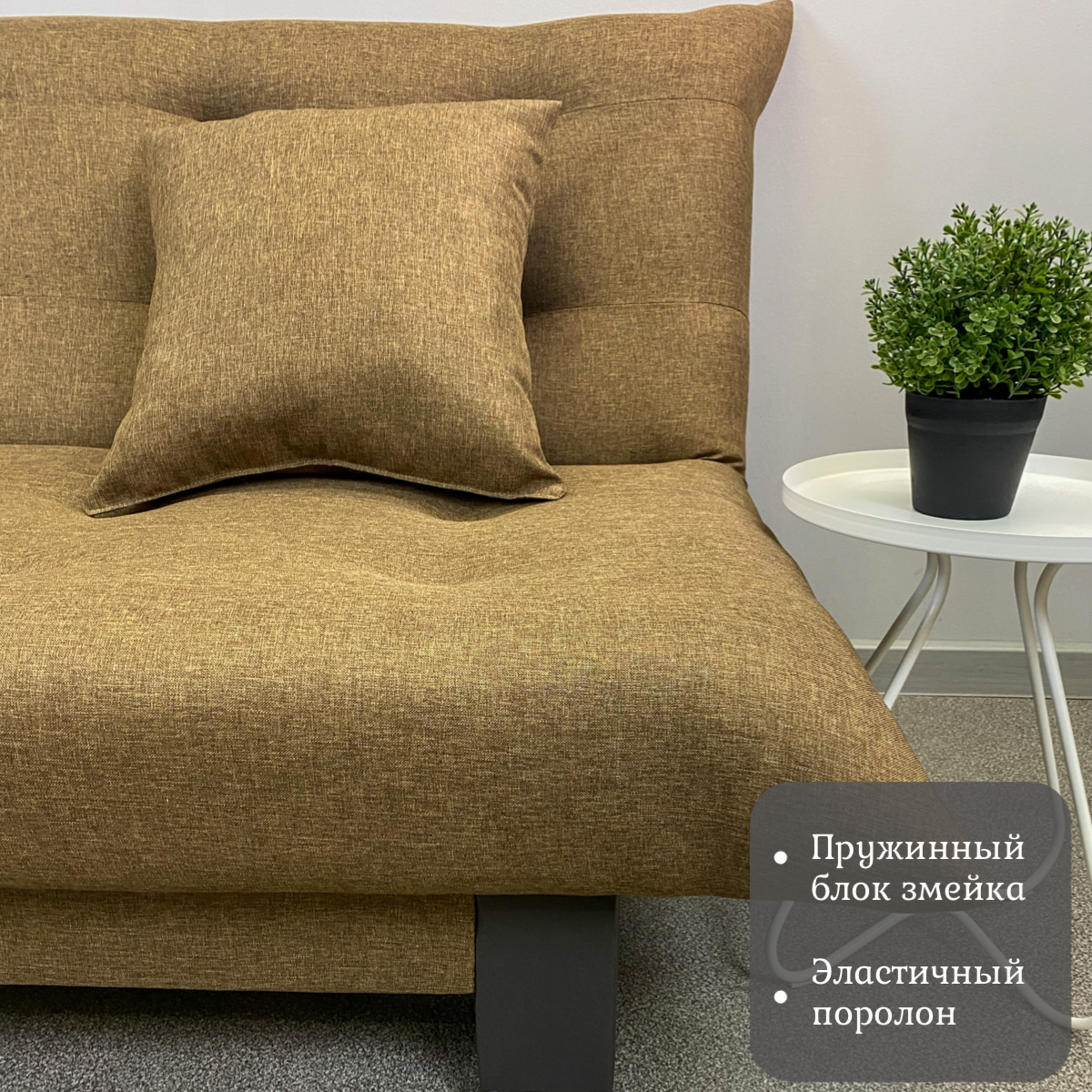 | Особенности | без подлокотников, пружинный блок, раскладная конструкция, съемные подушки |