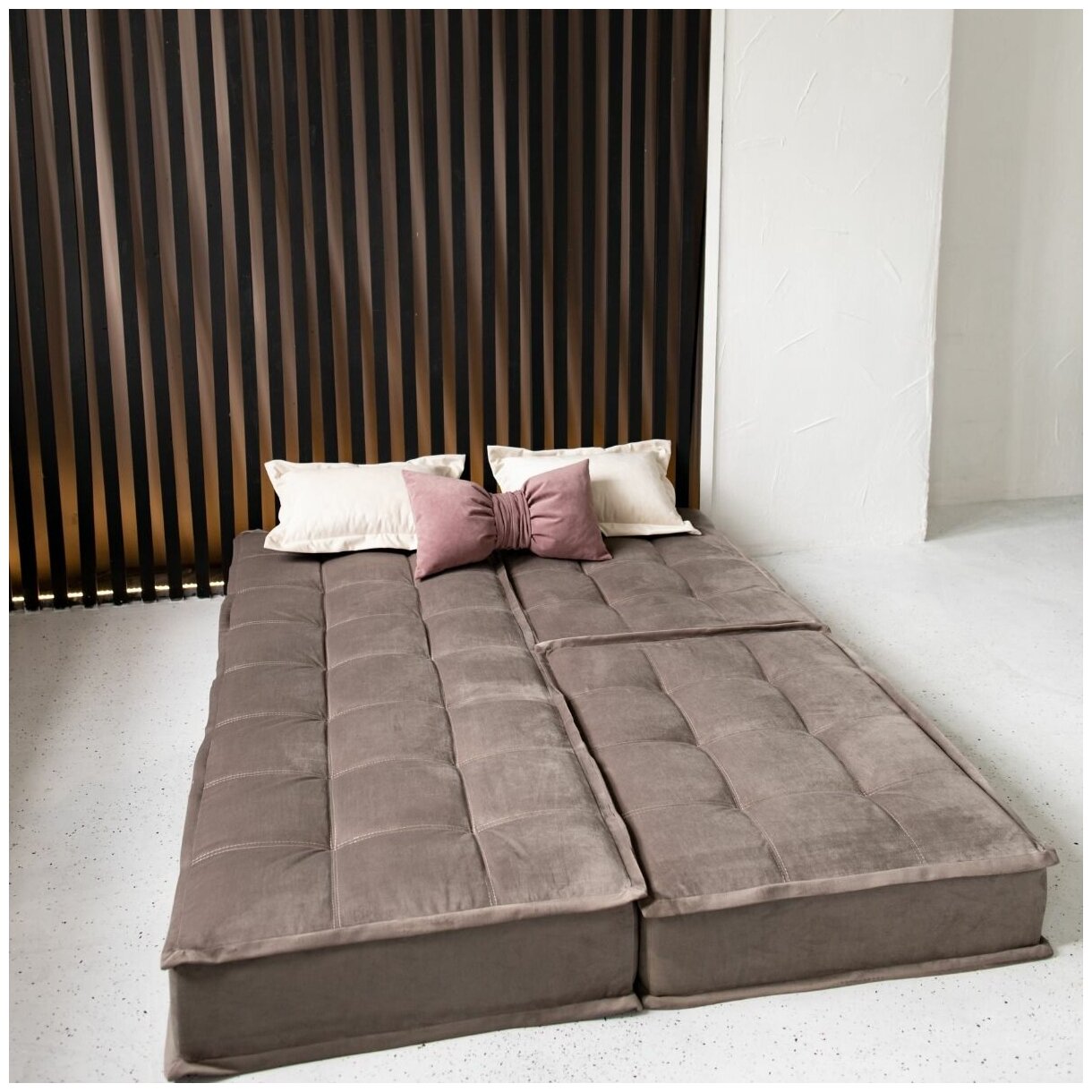 Диван кровать бескаркасный трансформер модульный MIELLA Lora, серо-бежевый интересное: