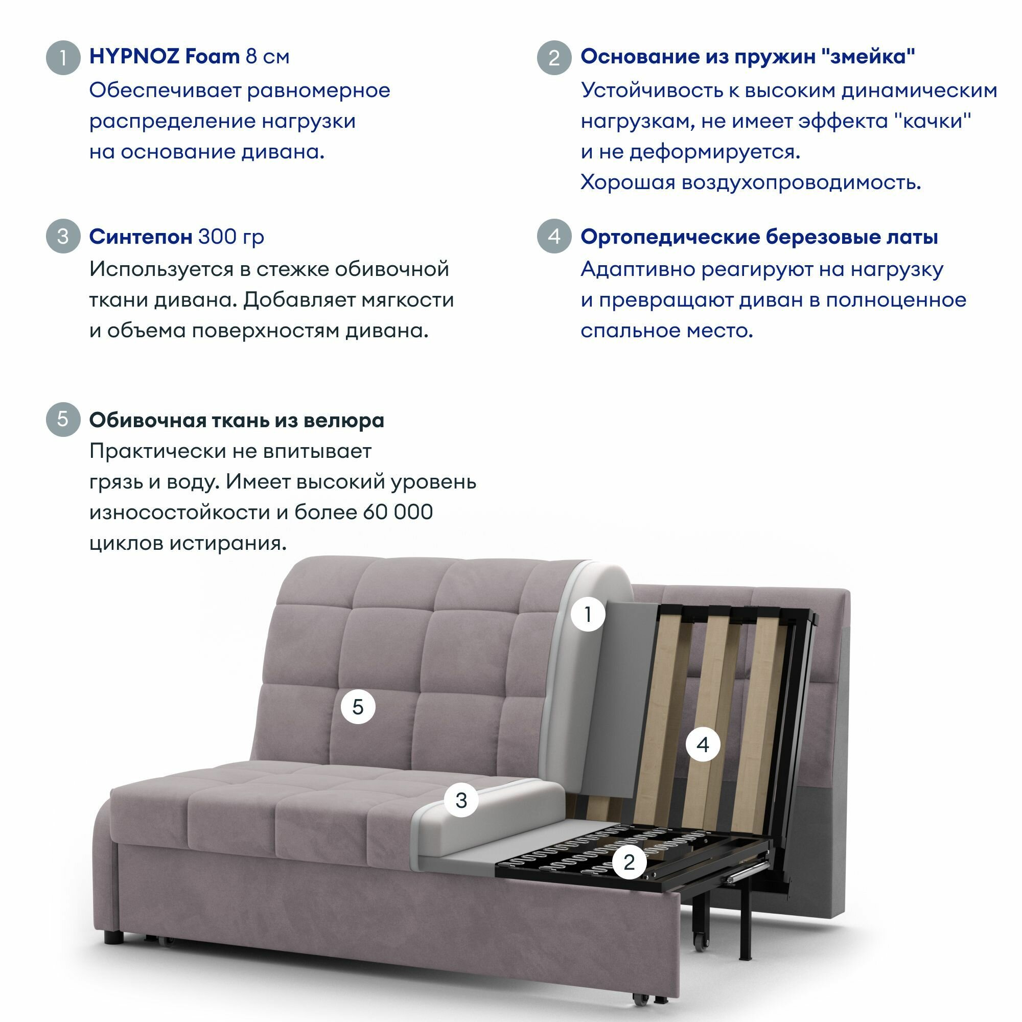 Диван HYPNOZ Frontera 140, механизм аккордеон, Серо-бежевый интересное: