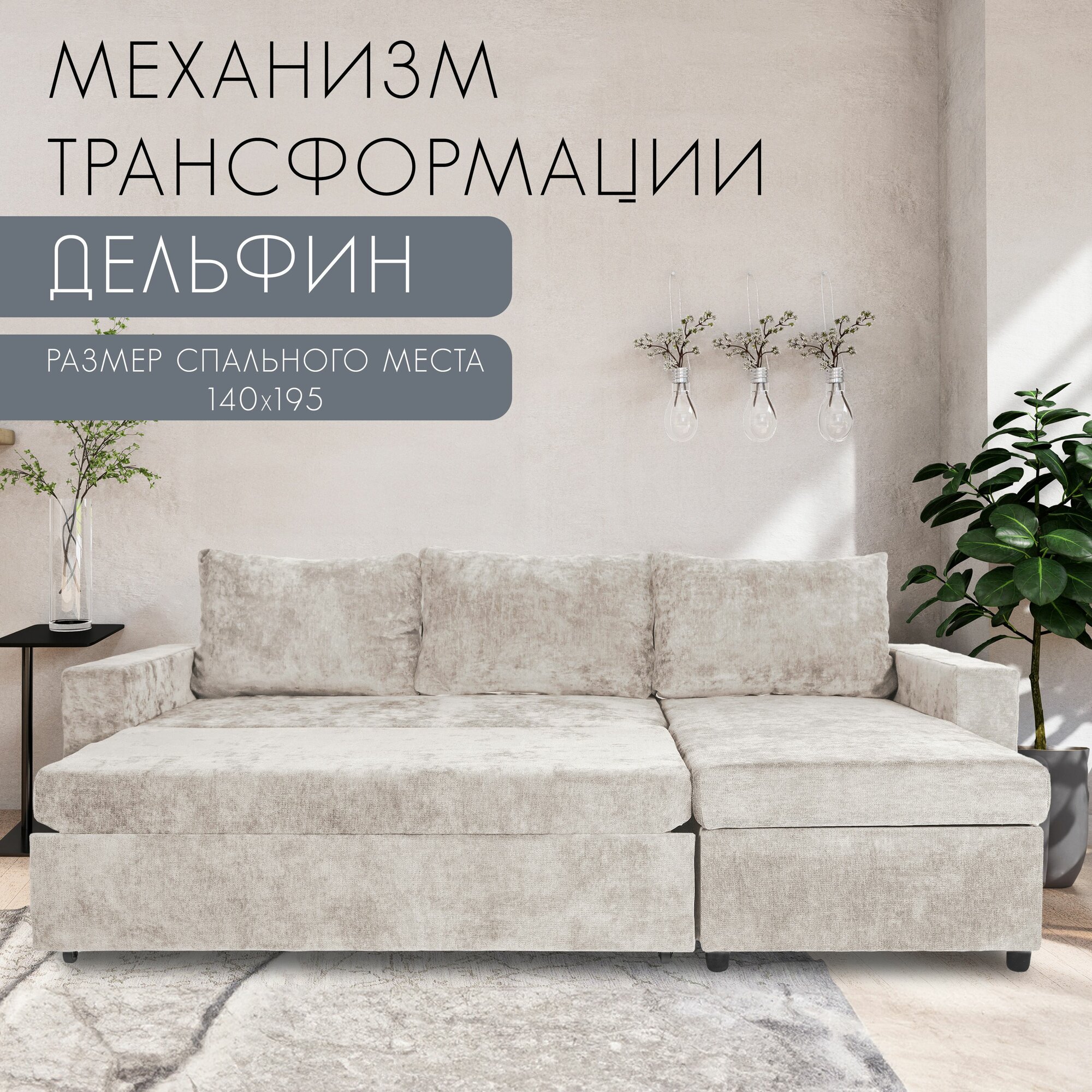 Угловой диван-кровать "Милли", раскладной, механизм Дельфин, с ящиком для белья. Шенилл. Цвет беж (кофе с молоком)