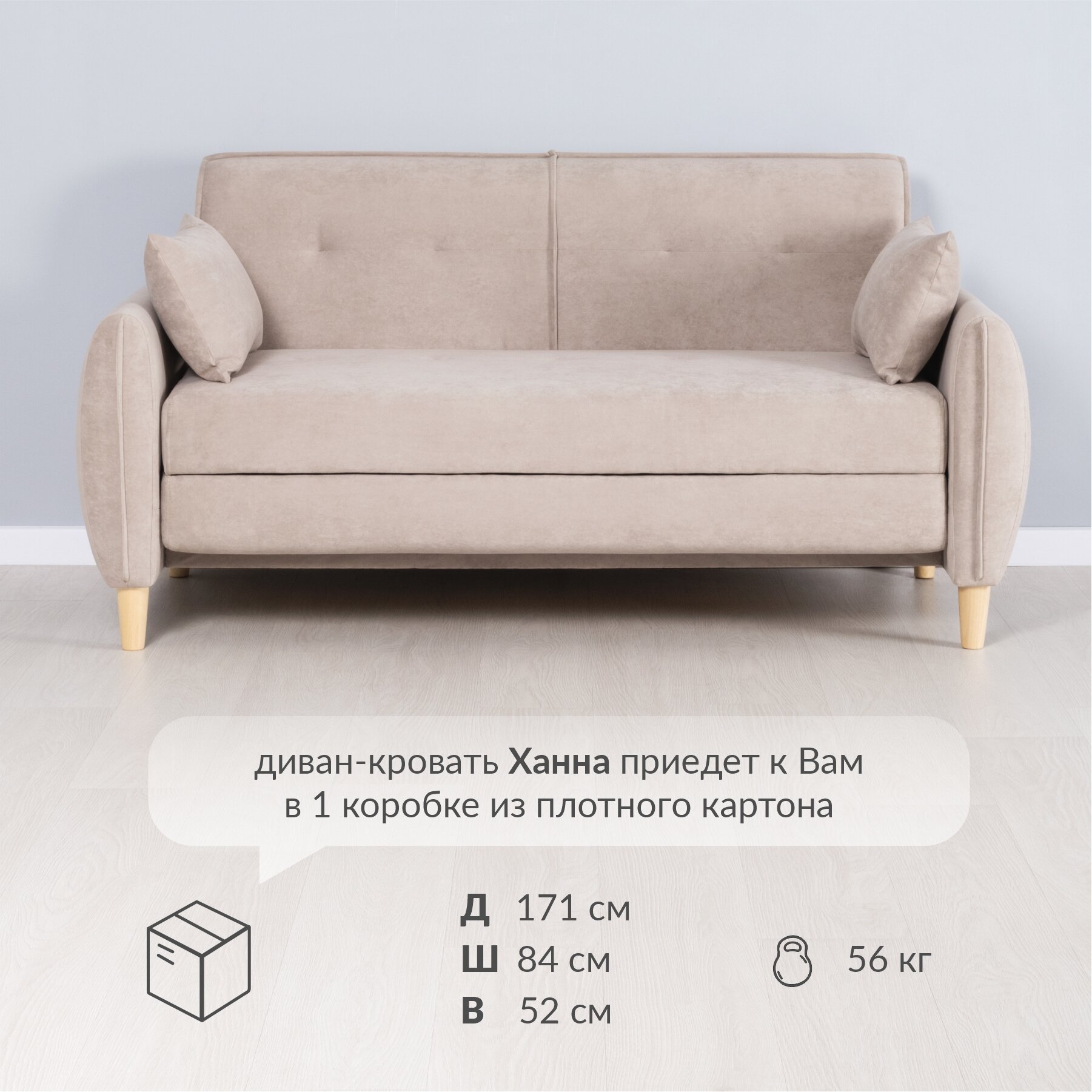 Диван раскладной Ханна 01.05 ТД 1384 Омега 56, размер 170*89*85 см, еврокнижка