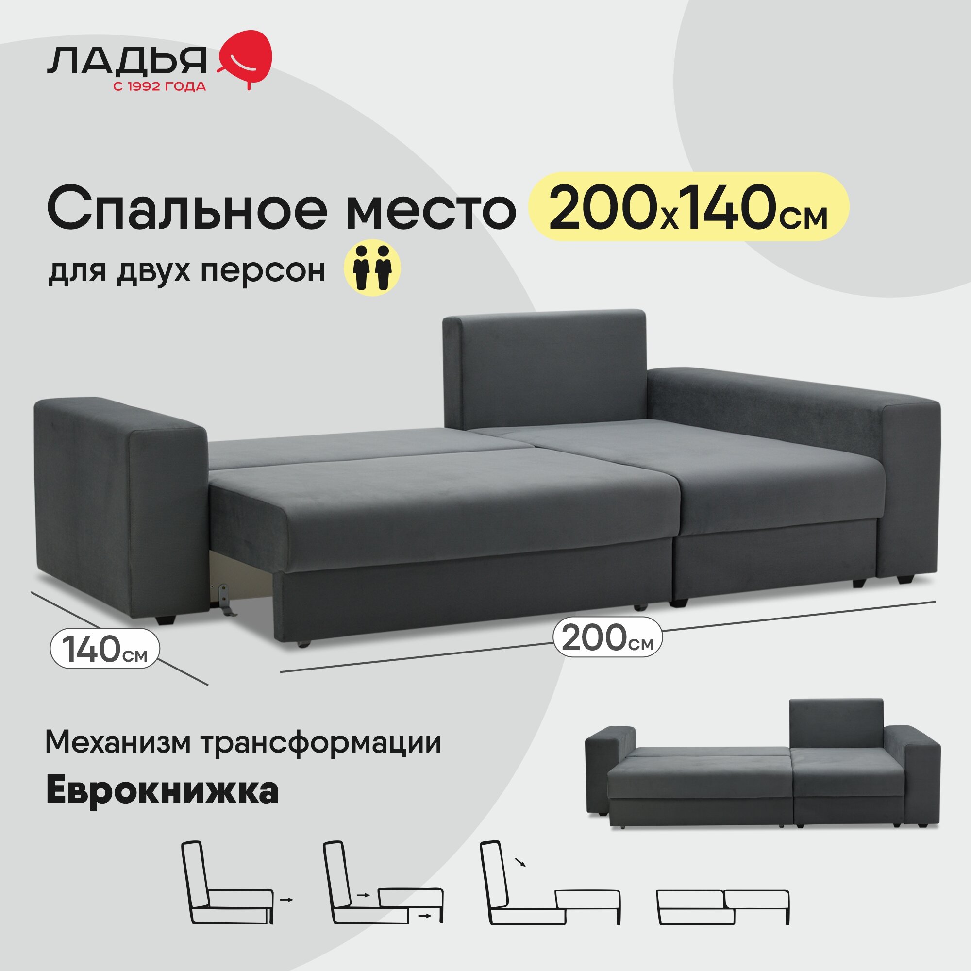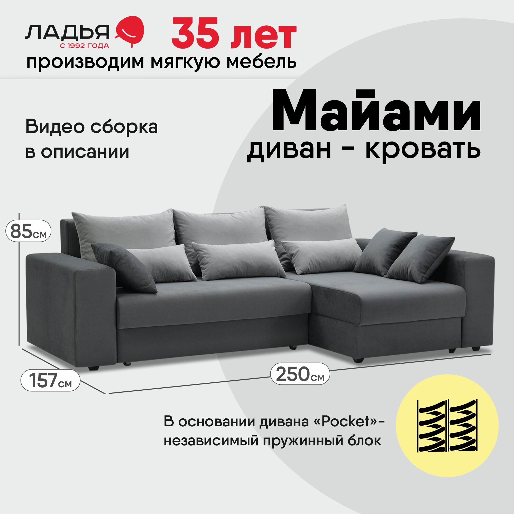 СохранитьУгловой диван-кровать Майами, размер: 250х157х85 см, спальное место:200х140см, правый угол, Neo 24 Киви 91 интересное: