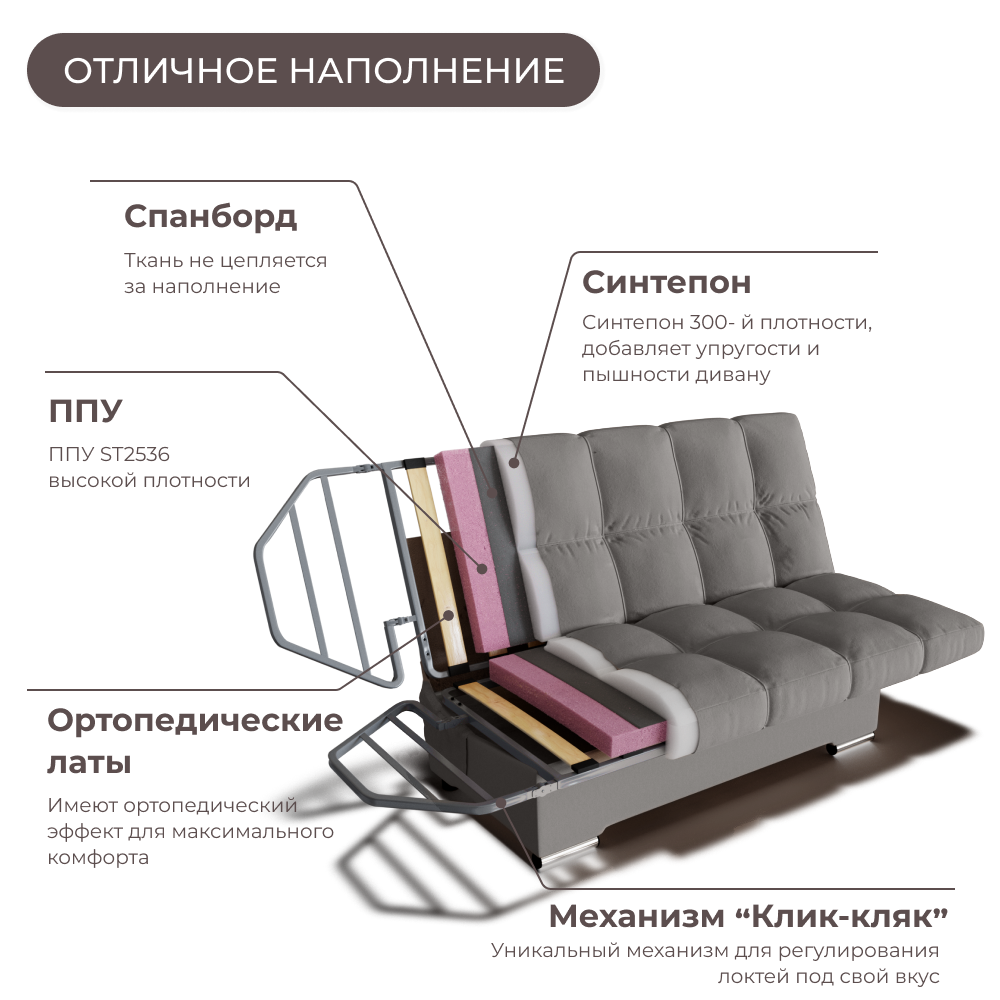 СохранитьДиван кровать раскладной с Ортопедическим основанием, механизм Клик-Кляк. Квест-14 интересное: