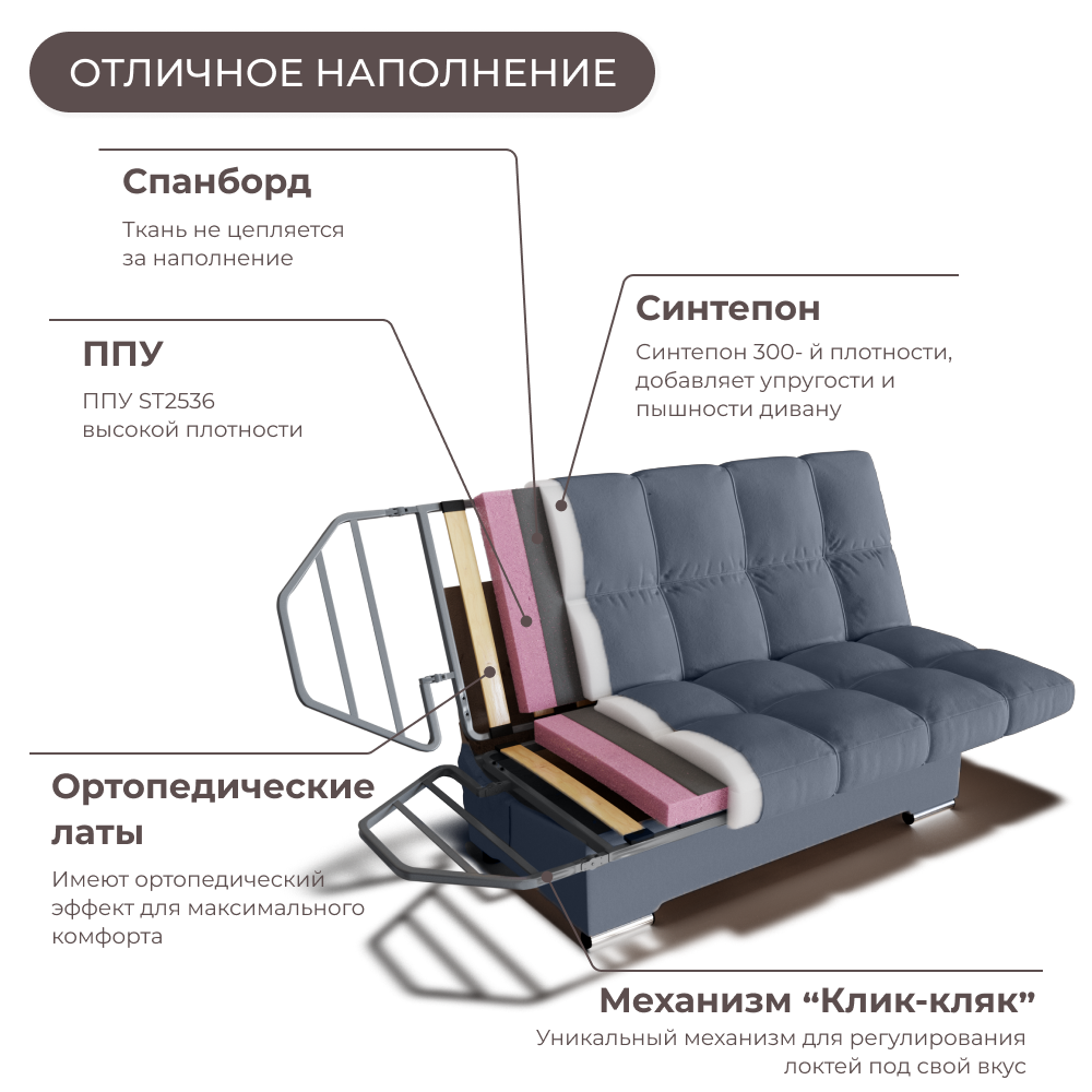 СохранитьДиван Кровать раскладной с ортопедическим основанием, механизм Клик-Кляк. Квест-26 интересное: