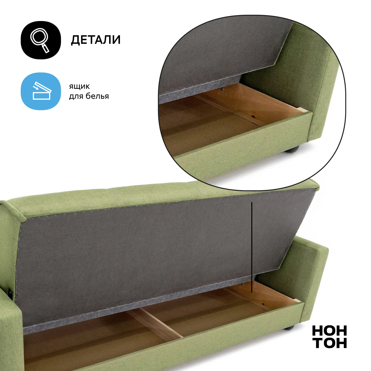 | Особенности | раскладная конструкция, с подлокотниками, ящик для белья |
