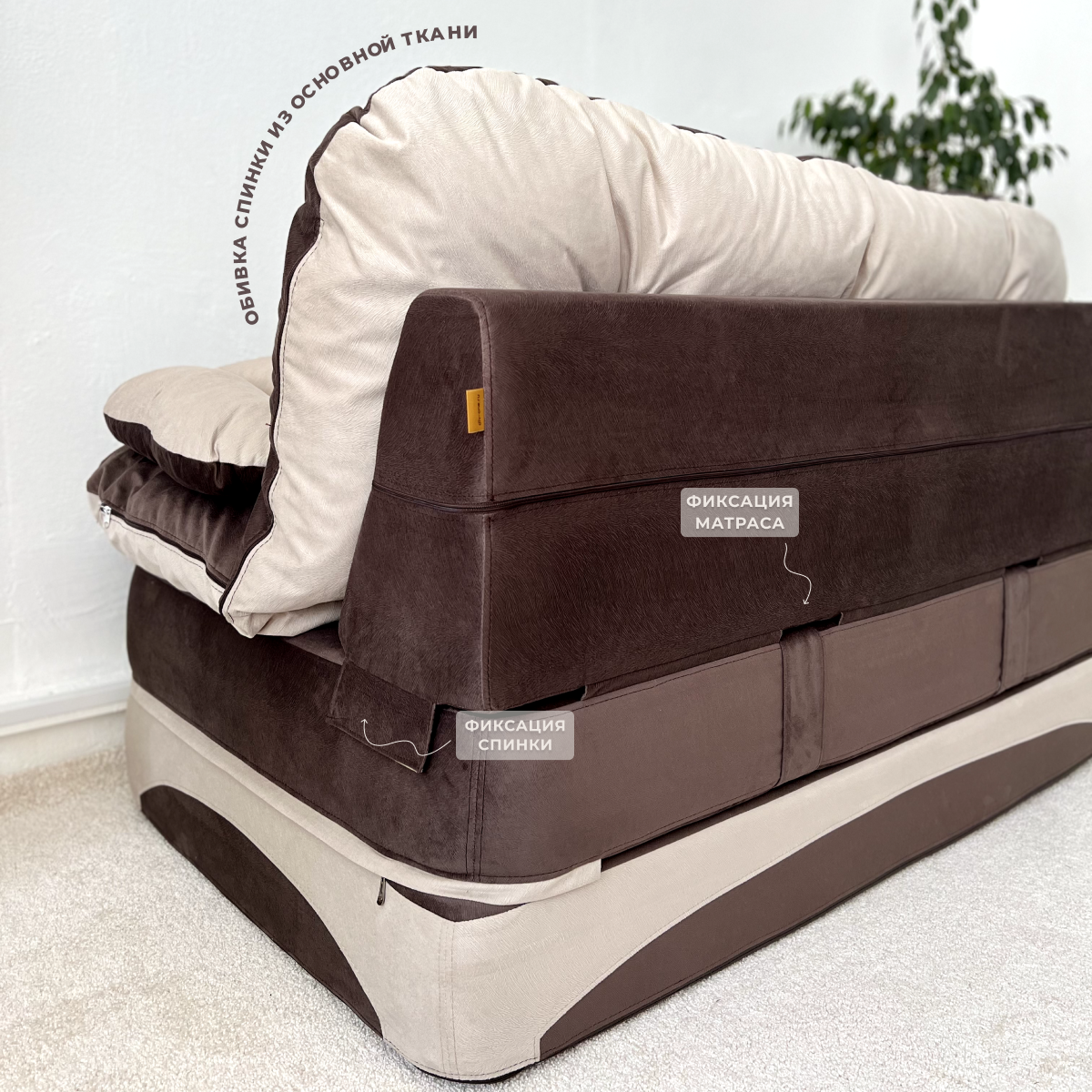 Диван раскладной двухместный от Div-one 195*93 см, трансформер, бескаркасный, спальное место 195*120 см, коричневый с бежевым