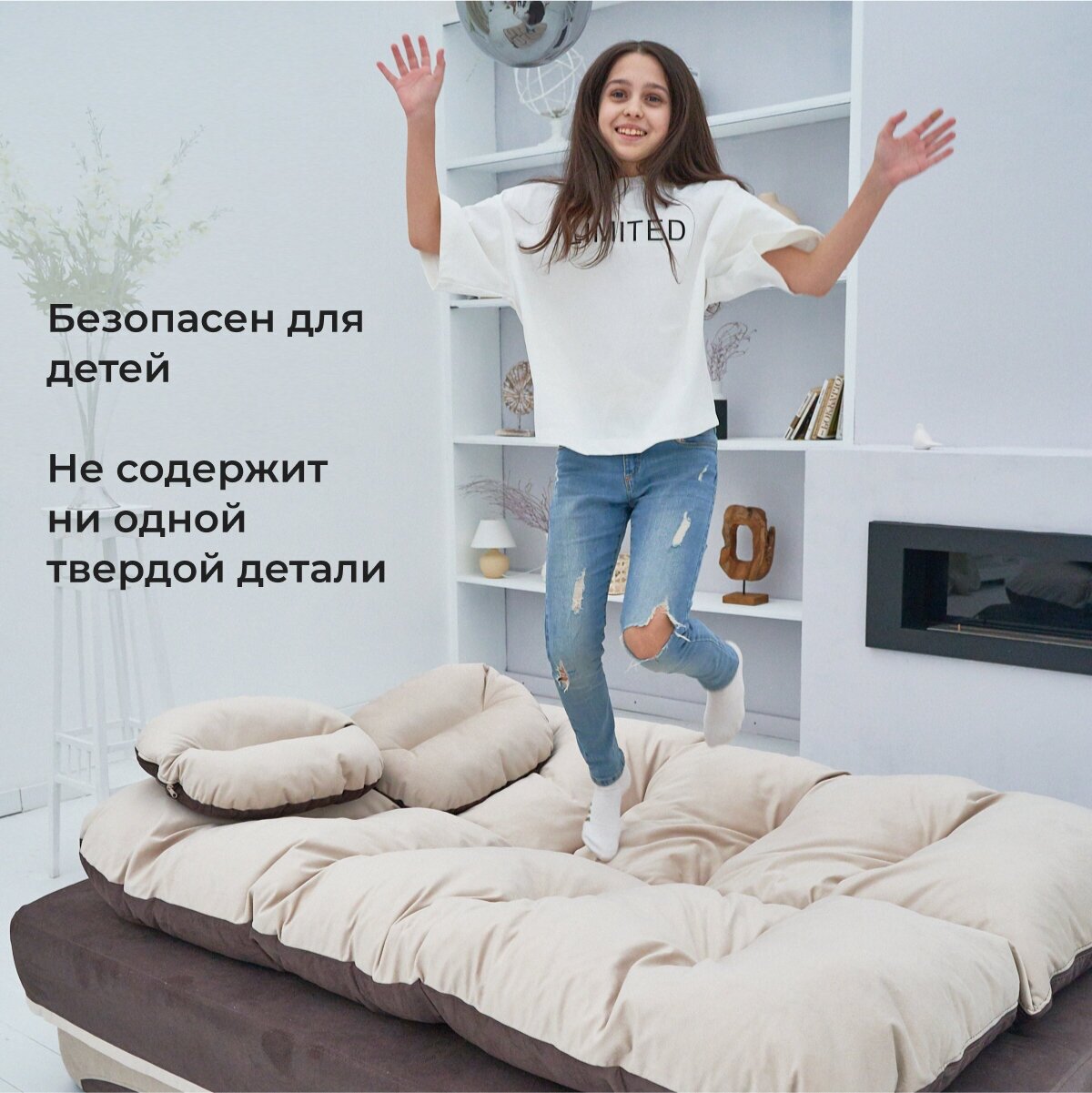 Диван раскладной от Div-one, трансформер, бескаркасный, двухспальный, 195*93*80 см, спальное место 195*120 см, коричневый с бежевым