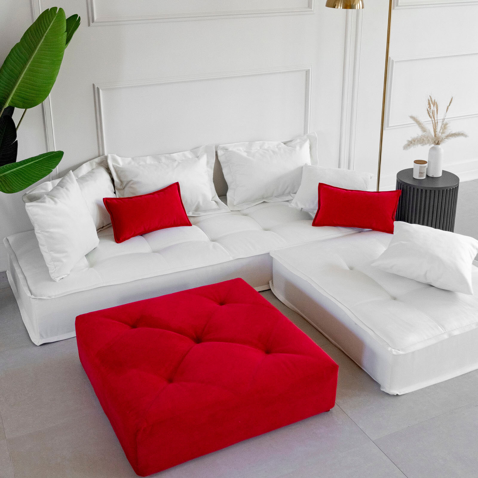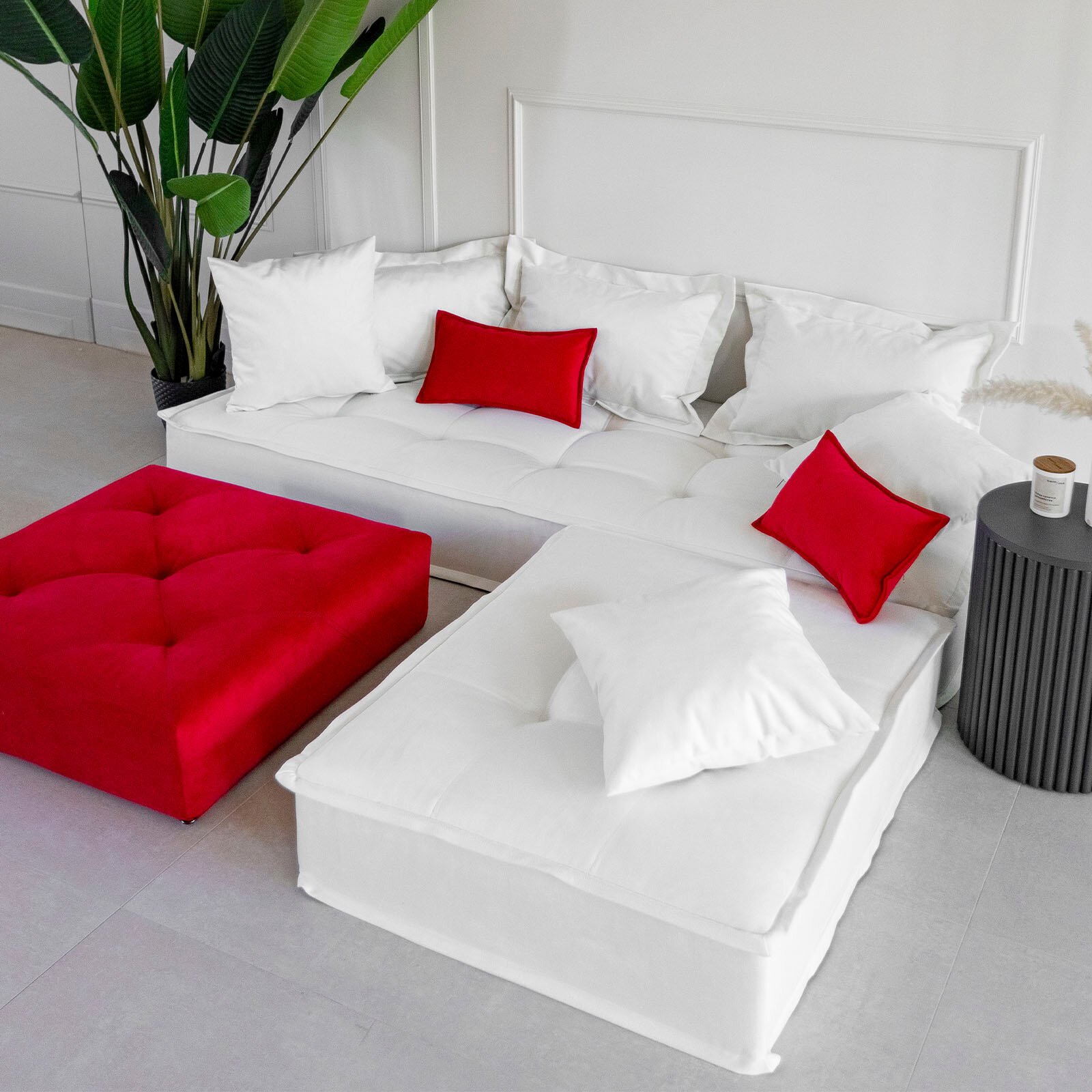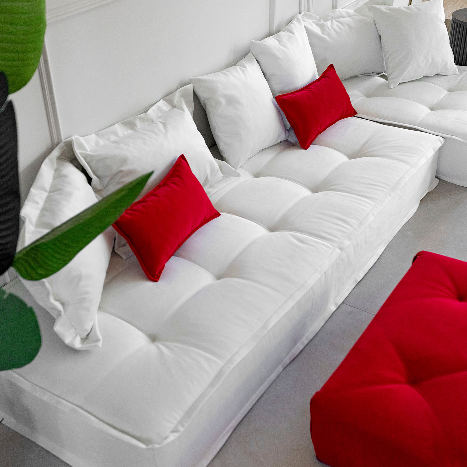 Диван кровать модульный бескаркасный MIELLA Lora Short, белый велюр Люкс интересное: