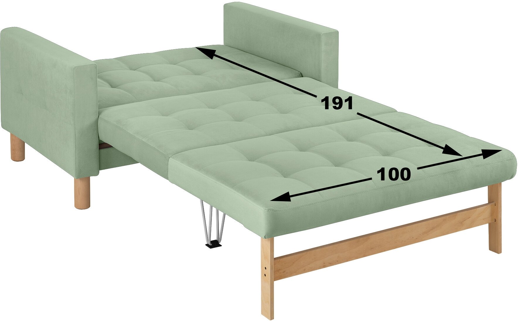 Купить Диван-кровать Этро, прямой, 122*77*78, спальное 100*191, велюр мятный, Велутто 14.
