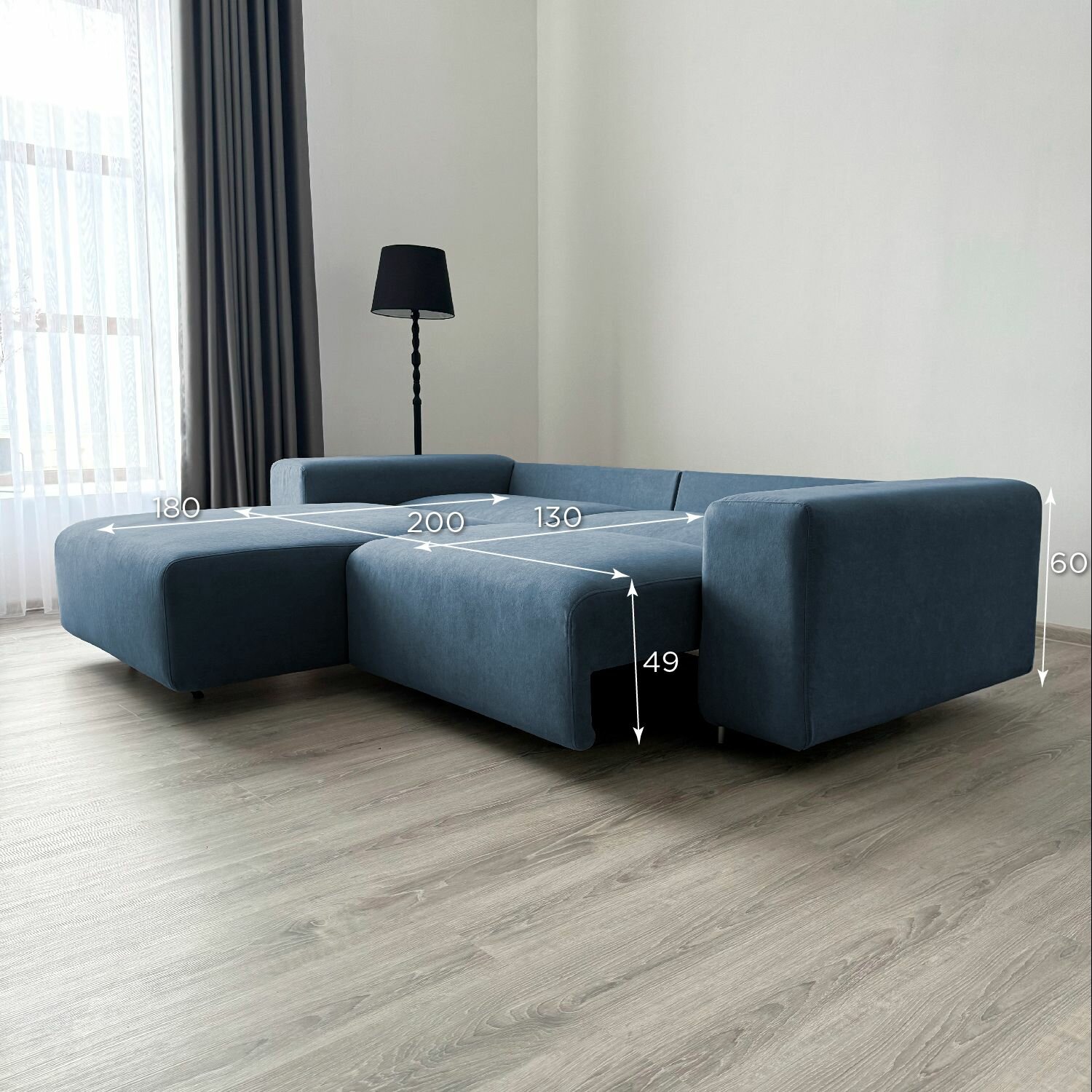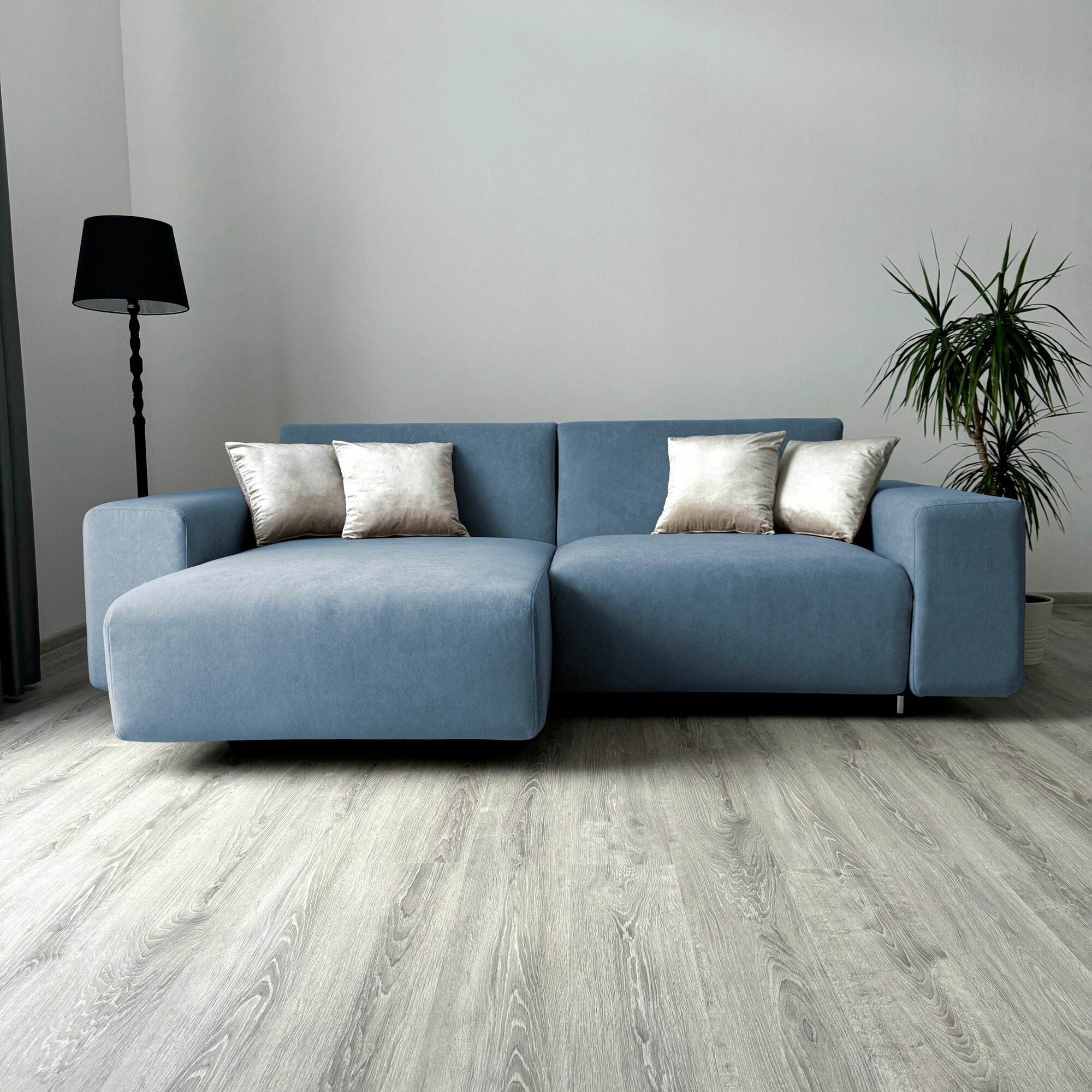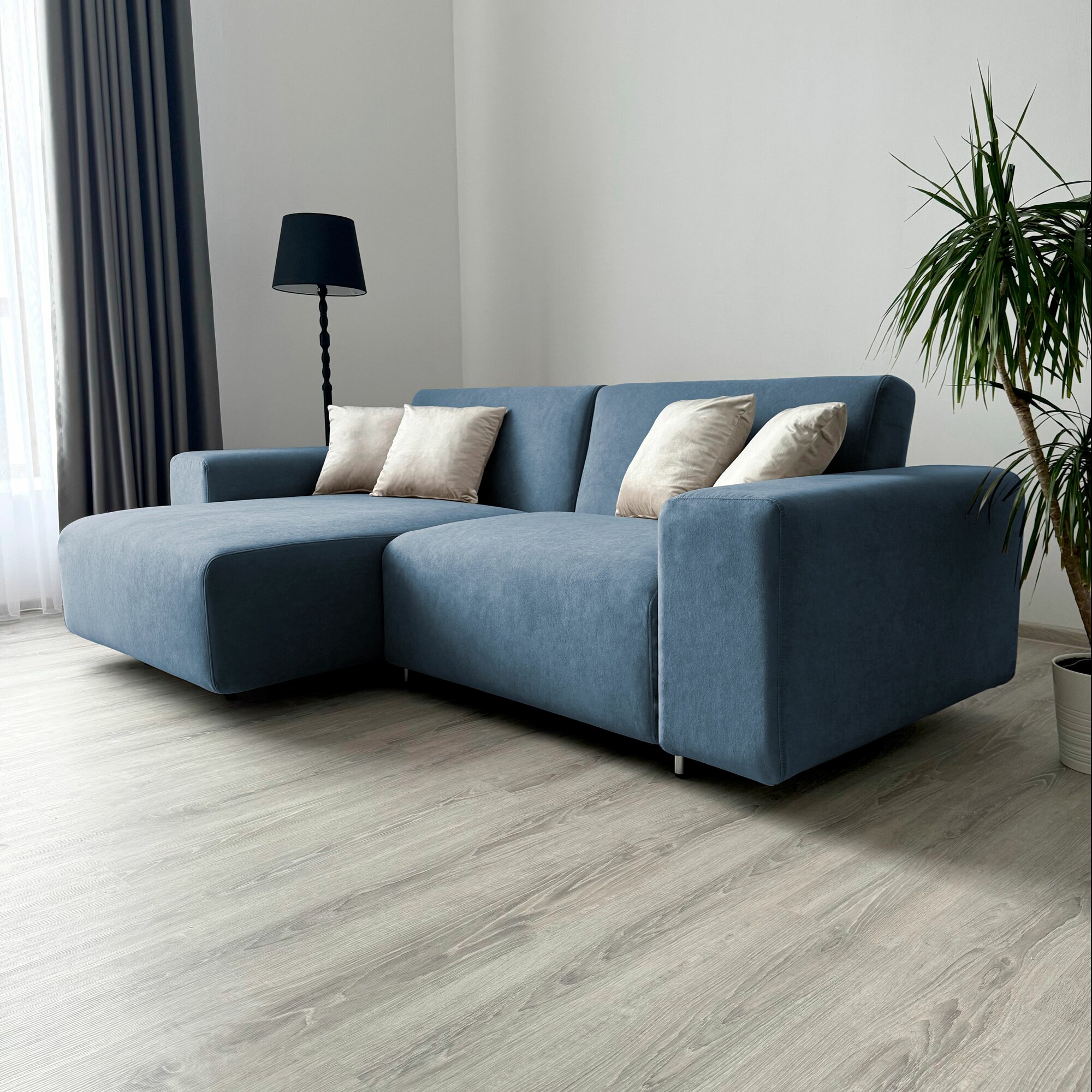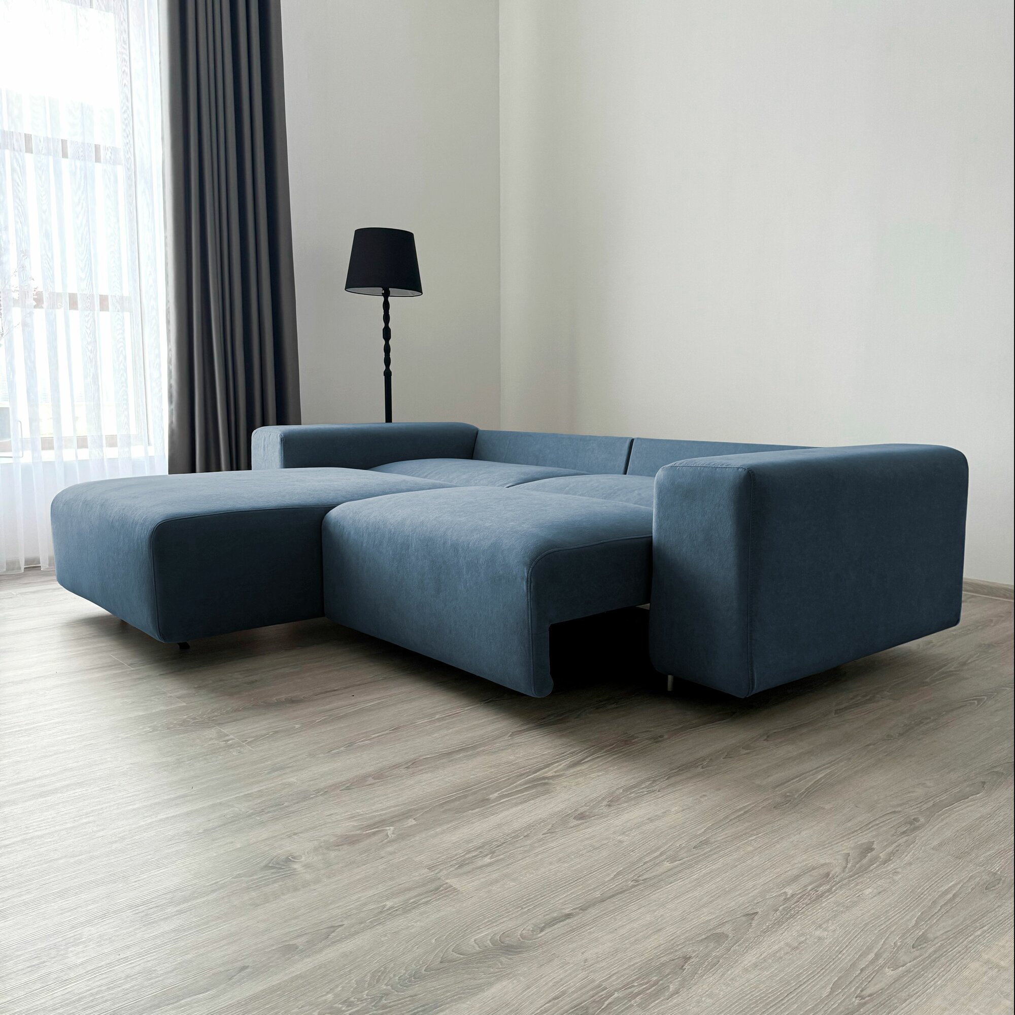 Диван-кровать Redsofa Аурис 260 см синий Teddi. Раскладной угловой диван со съемными чехлами, для дома и офиса (Мебельный гарнитур бытового назначения)