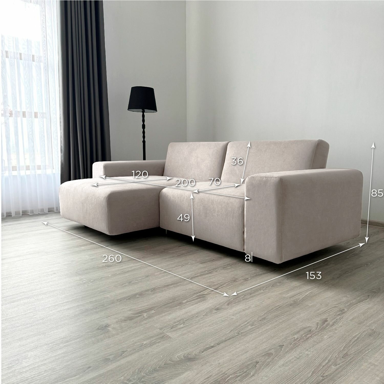 Диван-кровать Redsofa Аурис 260 см светло-бежевый Ocean. Раскладной угловой диван со съемными чехлами, для дома и офиса.