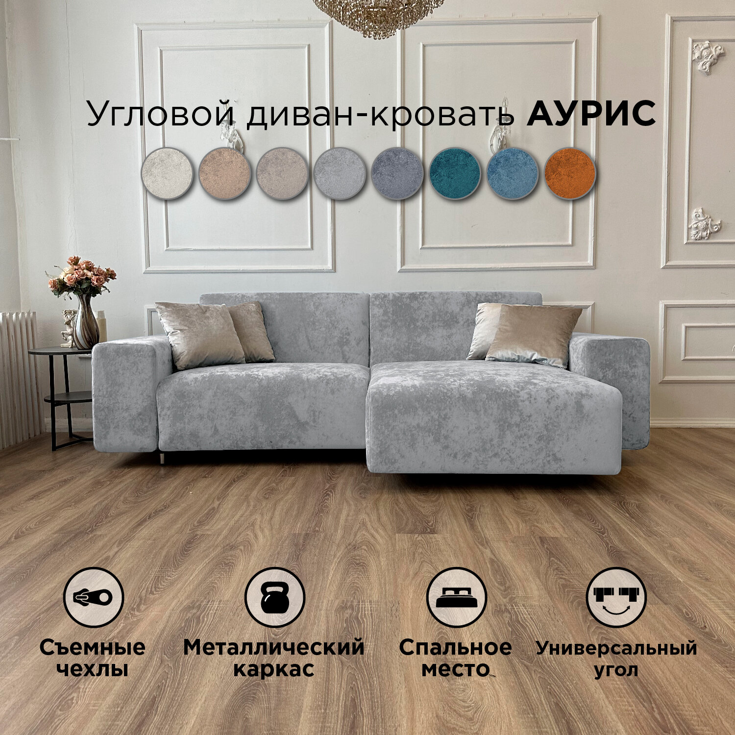 Диван-кровать Redsofa Аурис 260 см серебристый Ocean. Раскладной угловой диван со съемными чехлами, для дома и офиса.