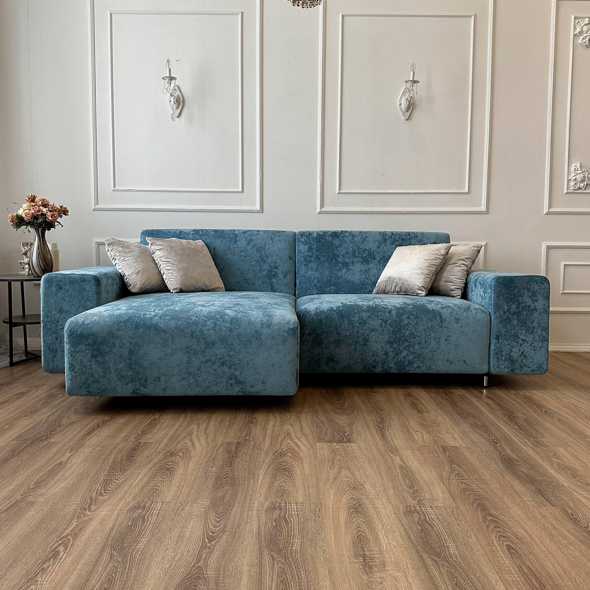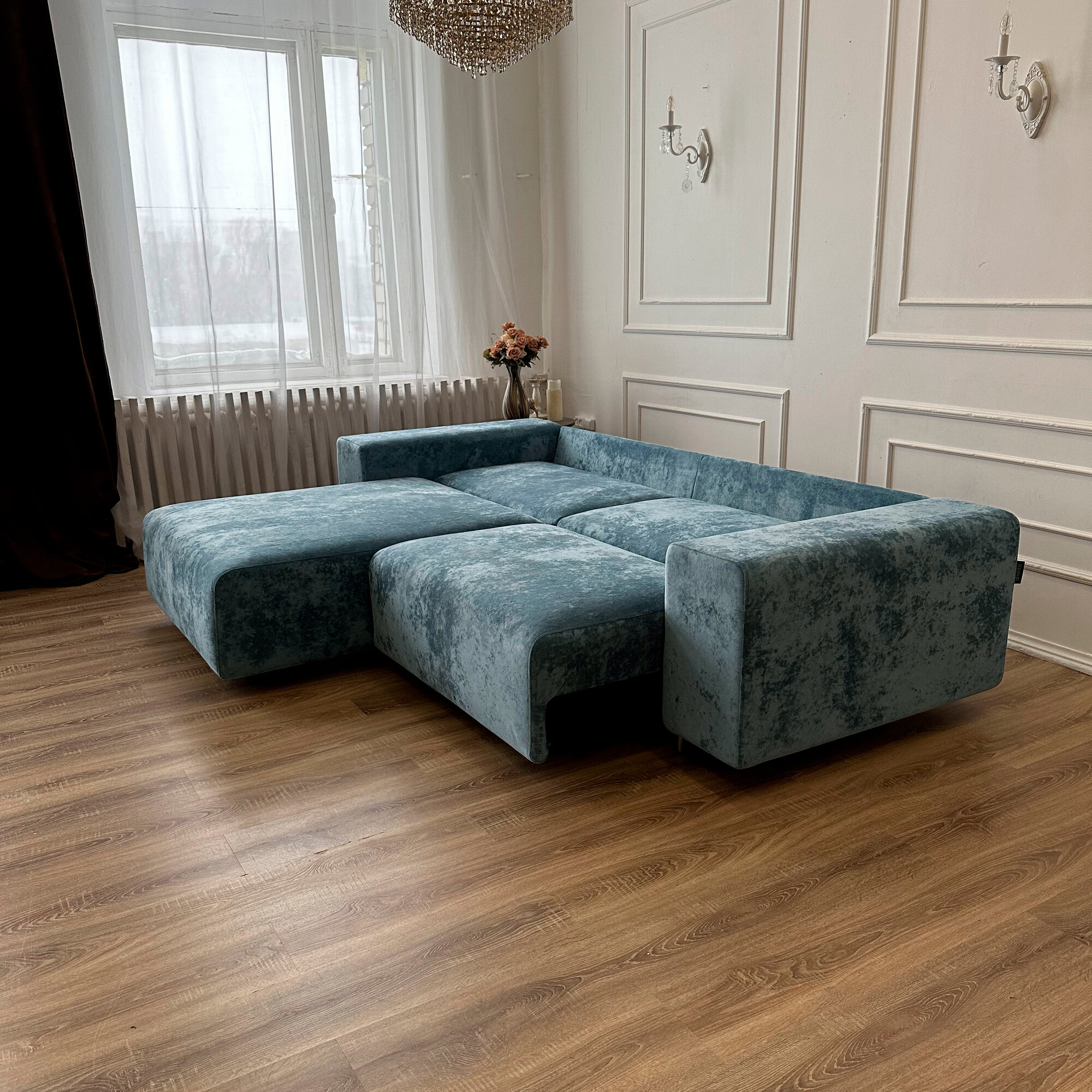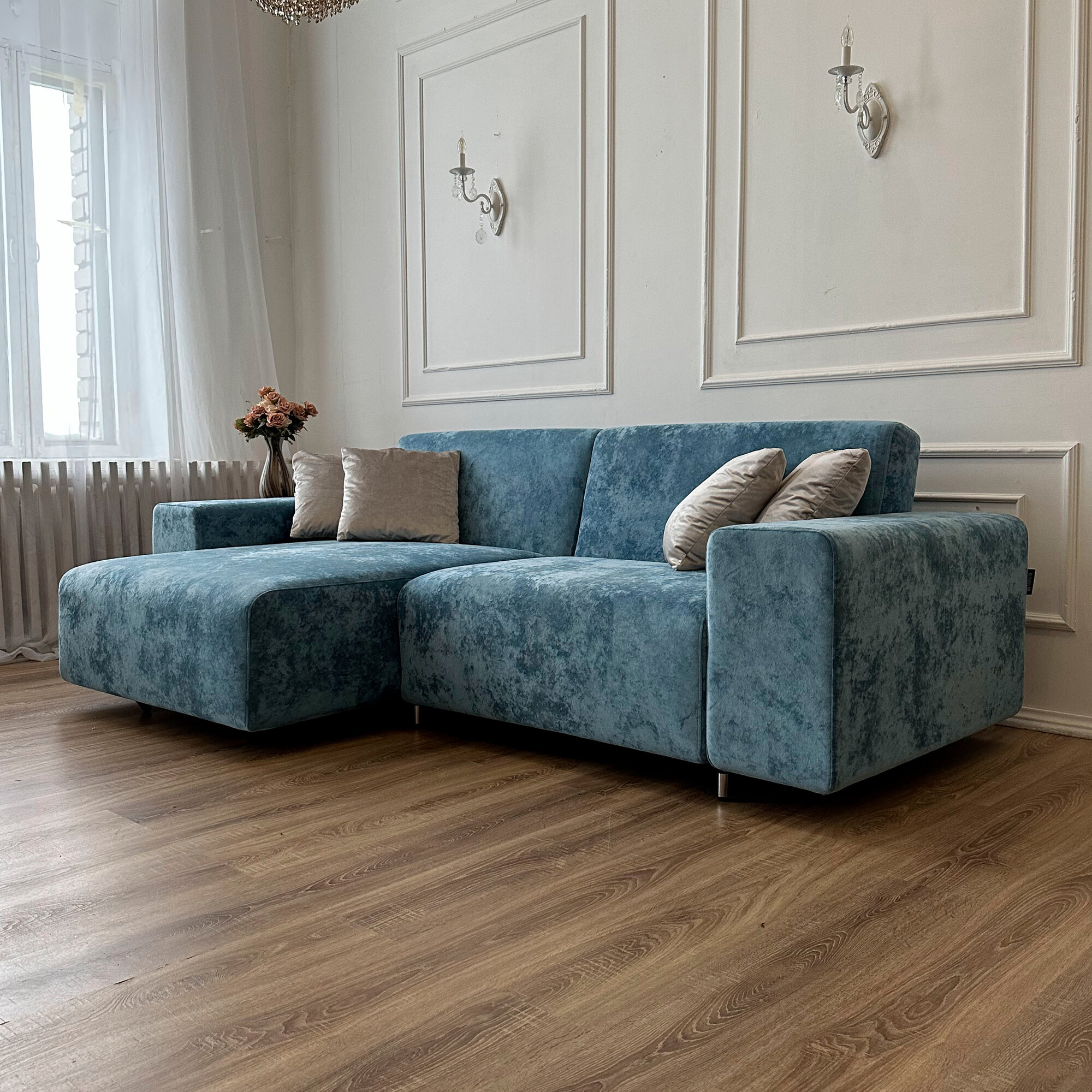 Диван-кровать Redsofa Аурис 260 см аквамарин Ocean. Раскладной угловой диван со съемными чехлами, для дома и офиса.