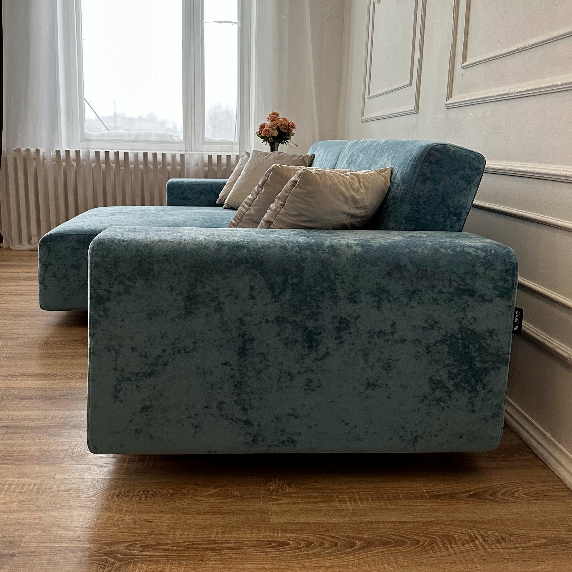 Диван-кровать Redsofa Аурис 260 см бирюзовый Teddi. Раскладной угловой диван со съемными чехлами, для дома и офиса.