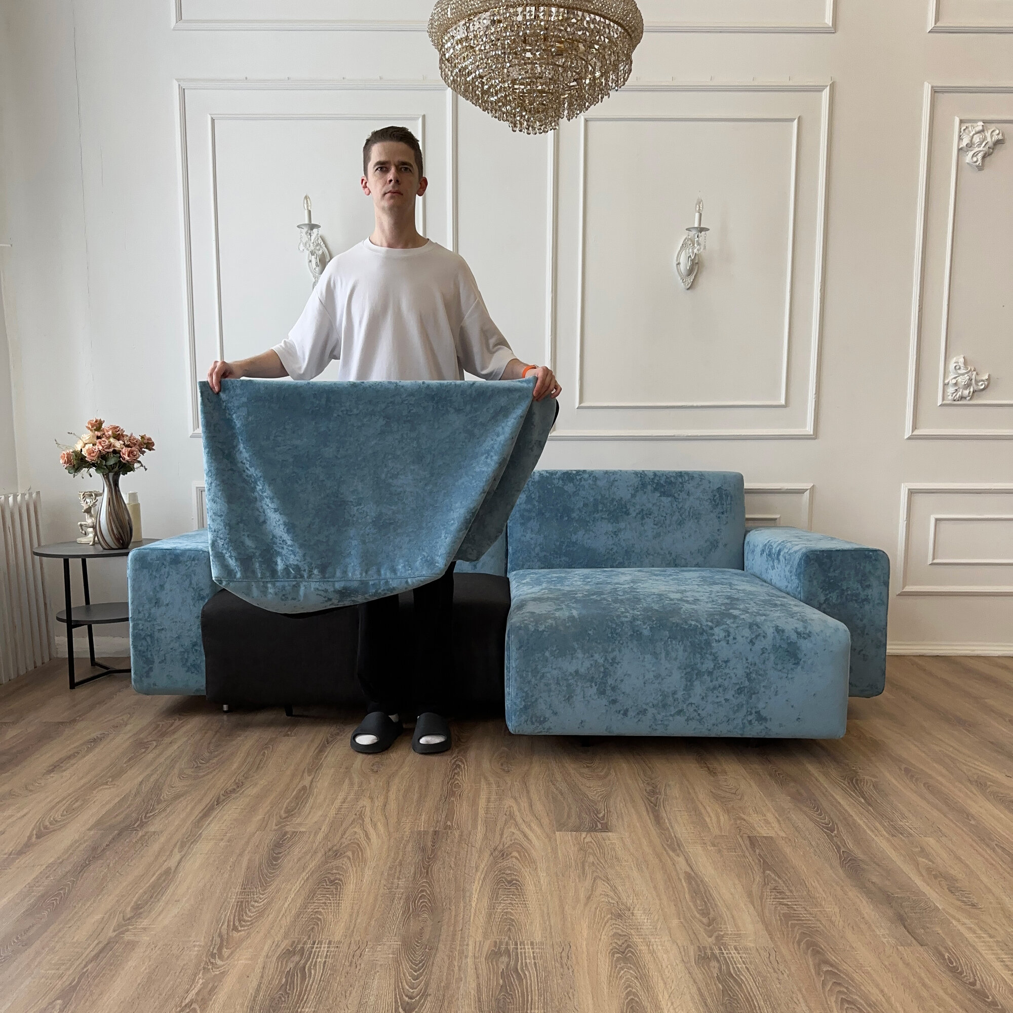 СохранитьДиван-кровать Redsofa Аурис 260 см голубой Ocean. Раскладной угловой диван со съемными чехлами, для дома и офиса. интересное: