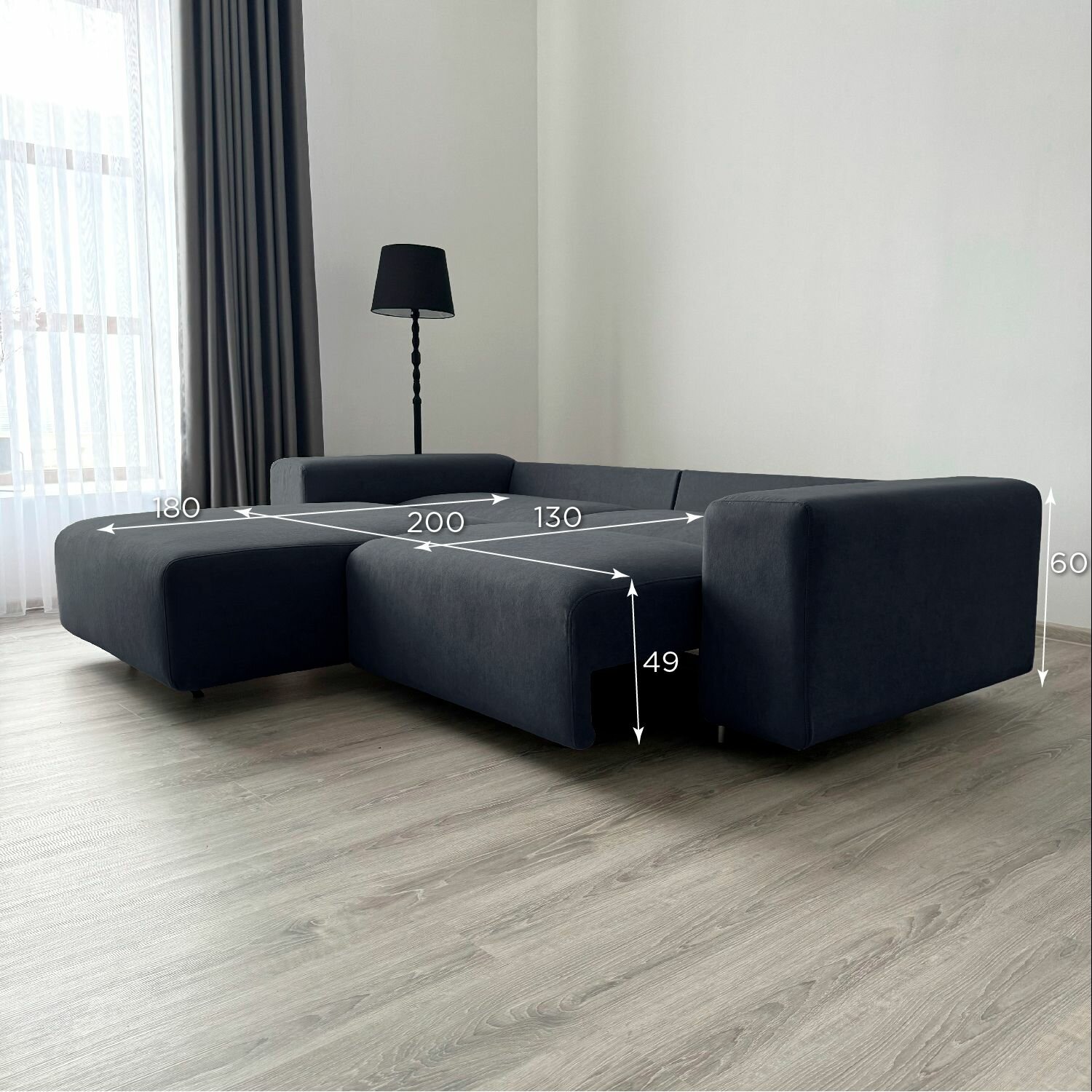 Купить Диван-кровать Redsofa Аурис 260 см графит Teddi. Раскладной угловой диван со съемными чехлами, для дома и офиса.