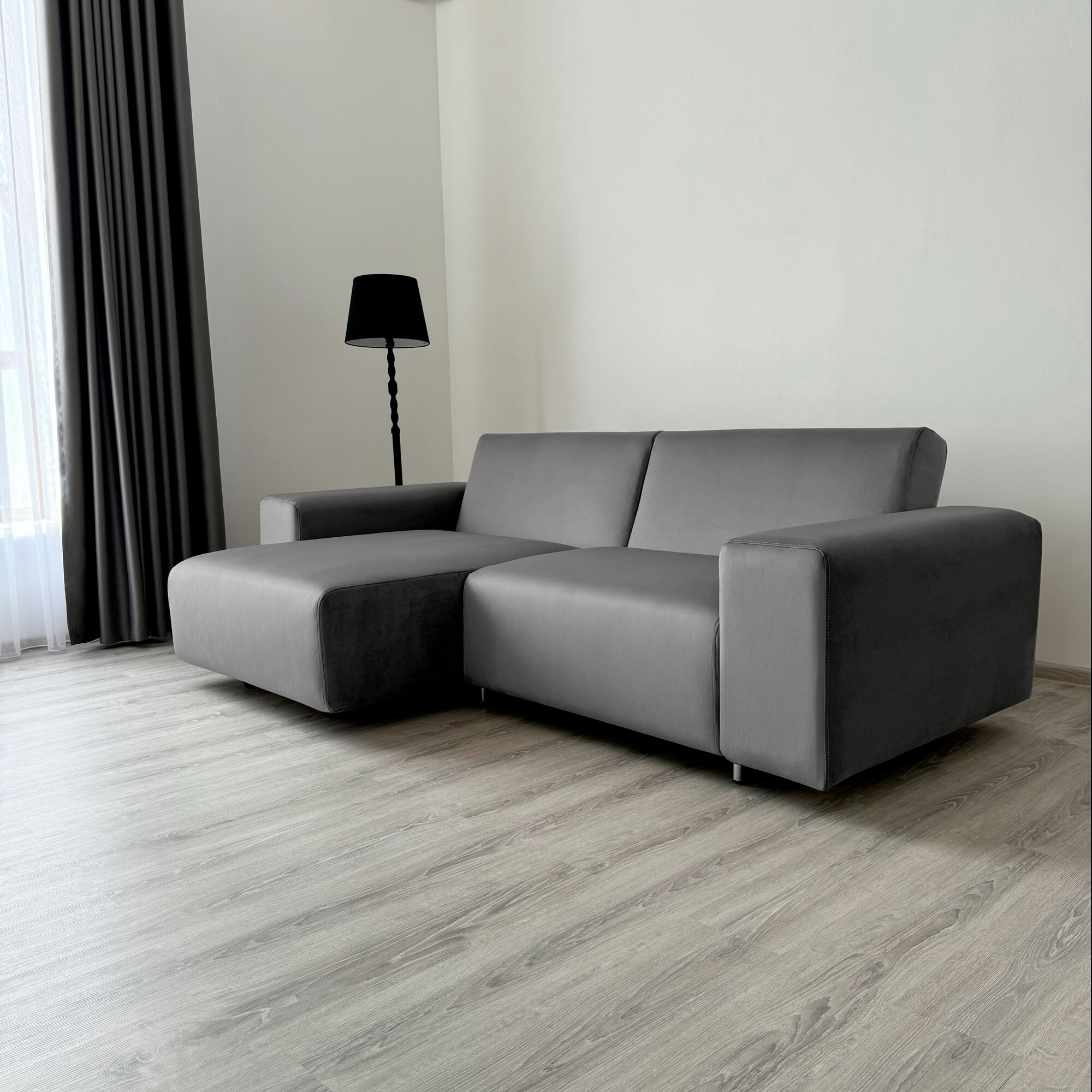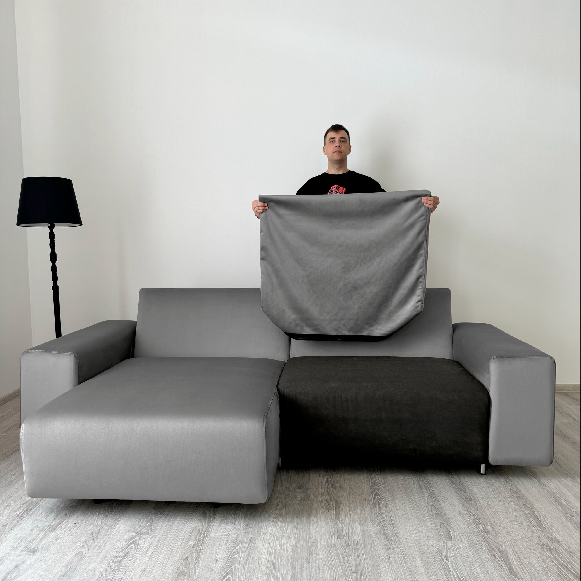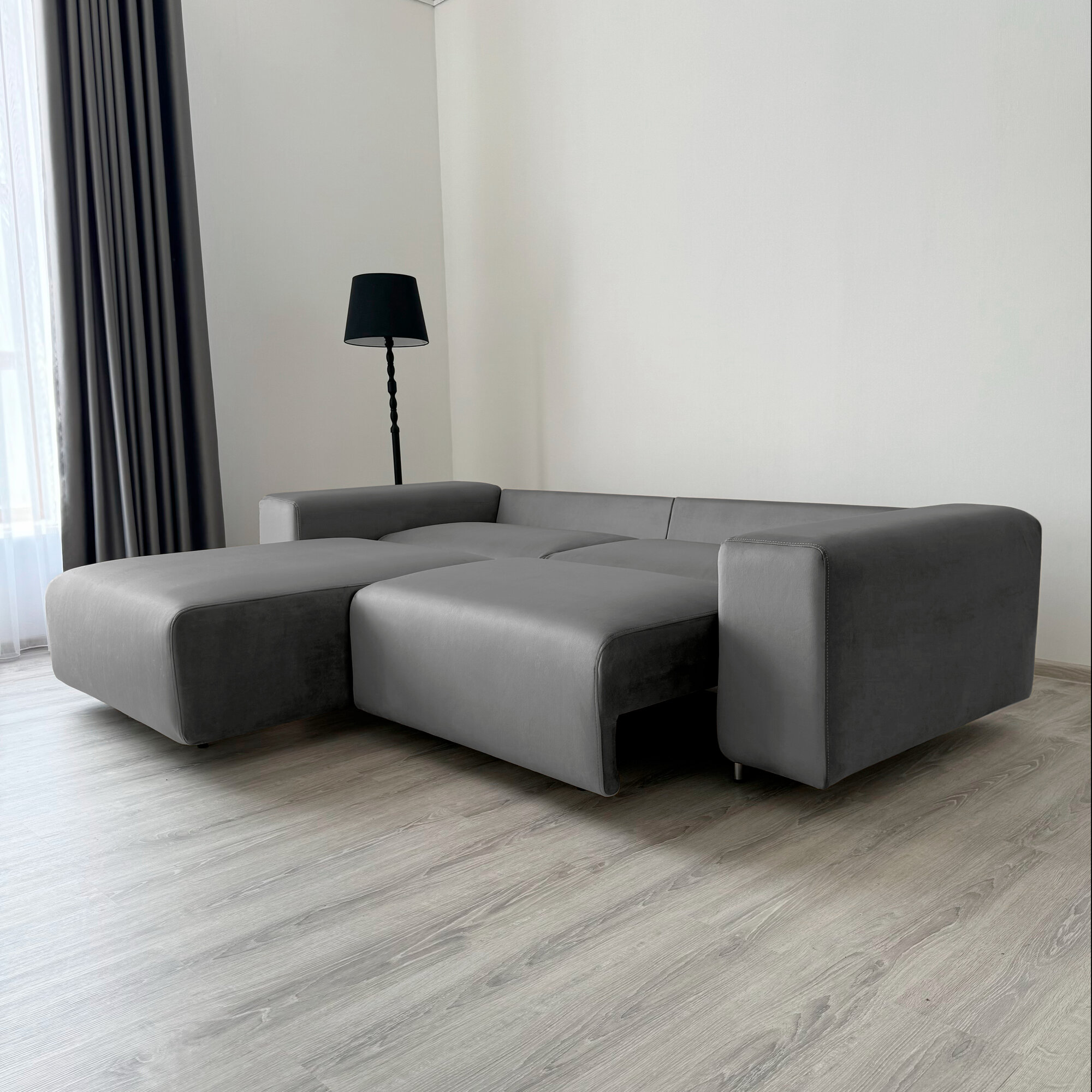 Диван-кровать Redsofa Аурис 260 см графит Teddi. Раскладной угловой диван со съемными чехлами, для дома и офиса.