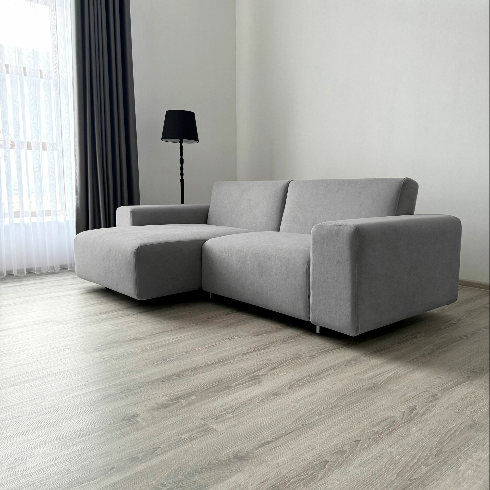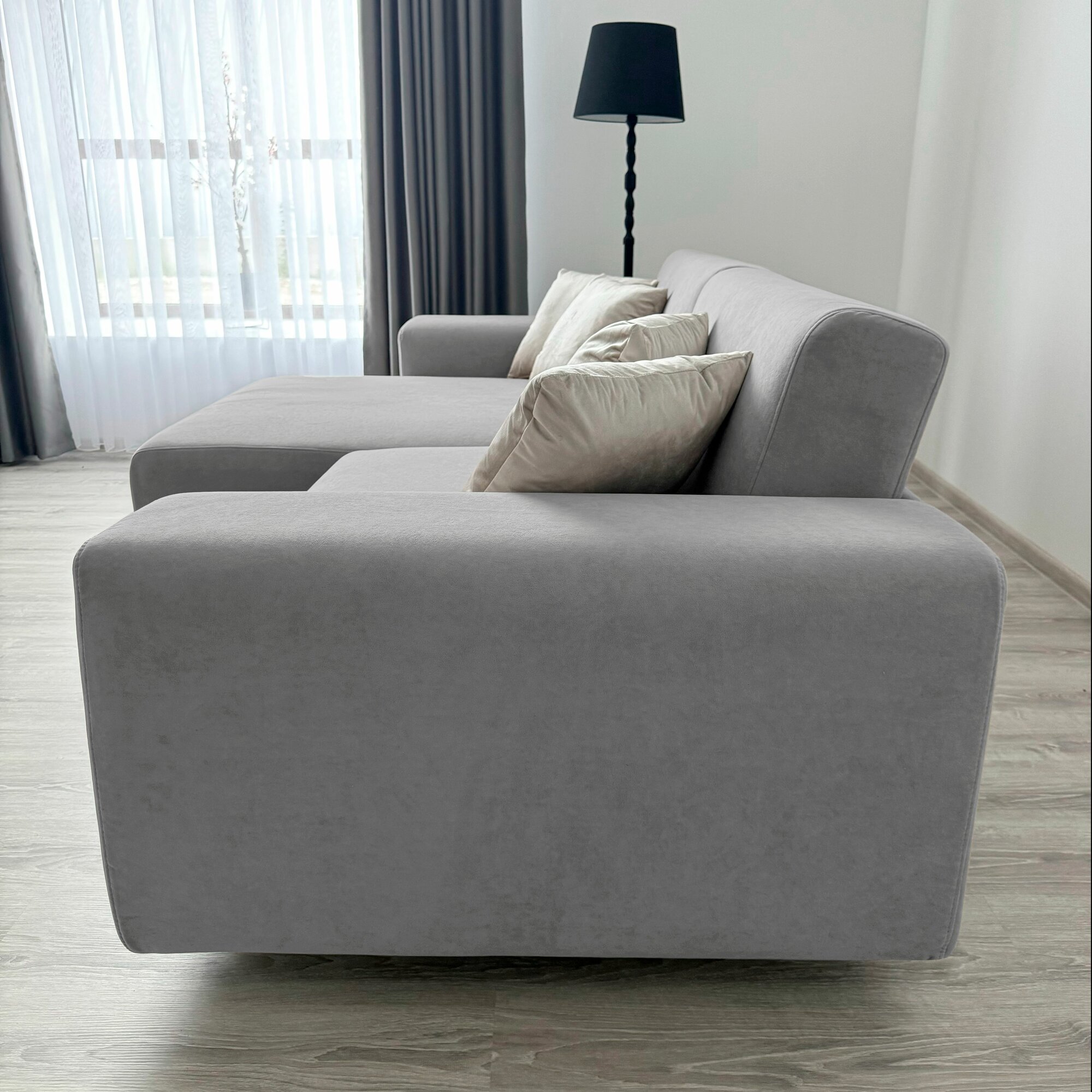 Диван-кровать Redsofa Аурис 260 см серый Teddi. Раскладной угловой диван со съемными чехлами, для дома и офиса.