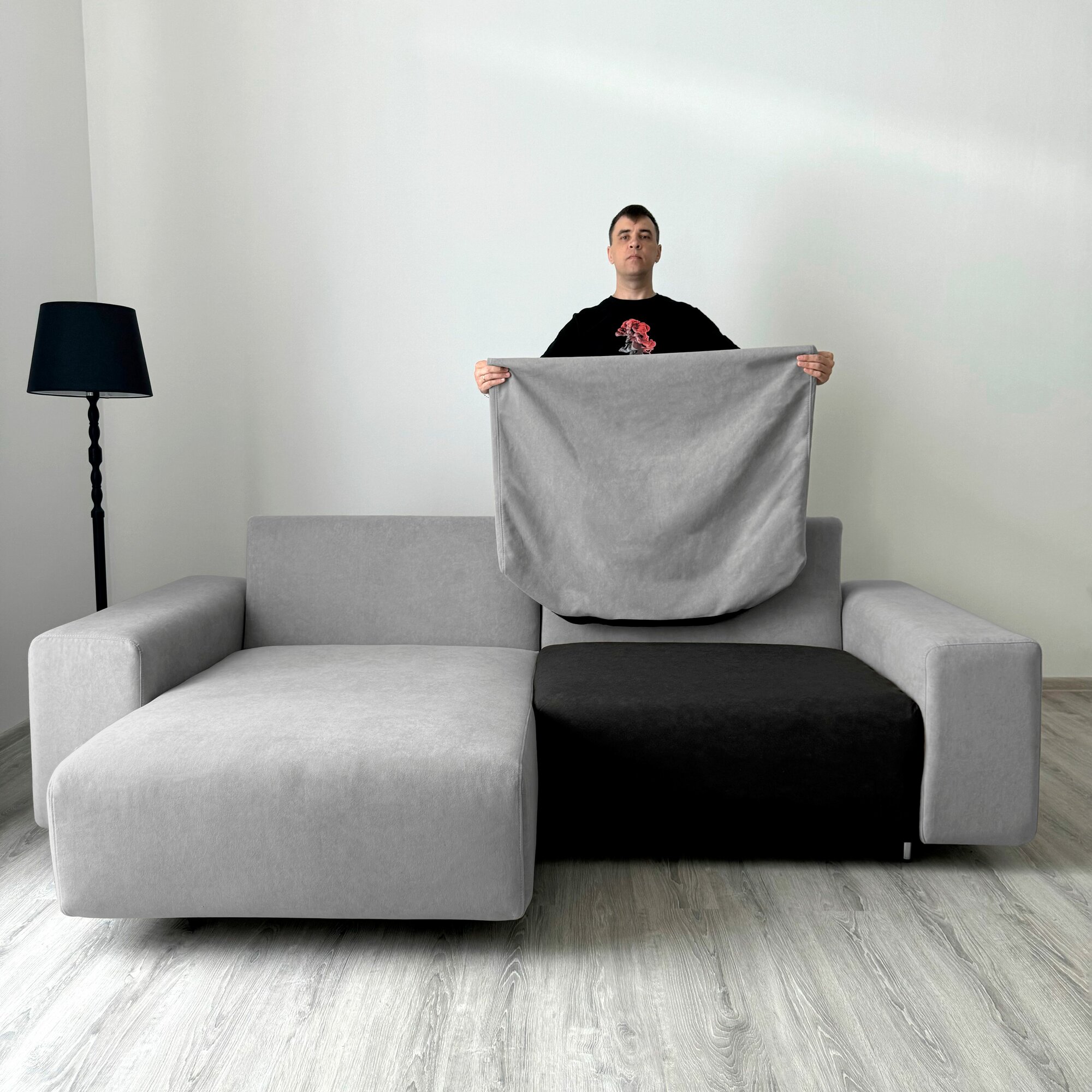 Диван-кровать Redsofa Аурис 260 см графит Teddi. Раскладной угловой диван со съемными чехлами, для дома и офиса.