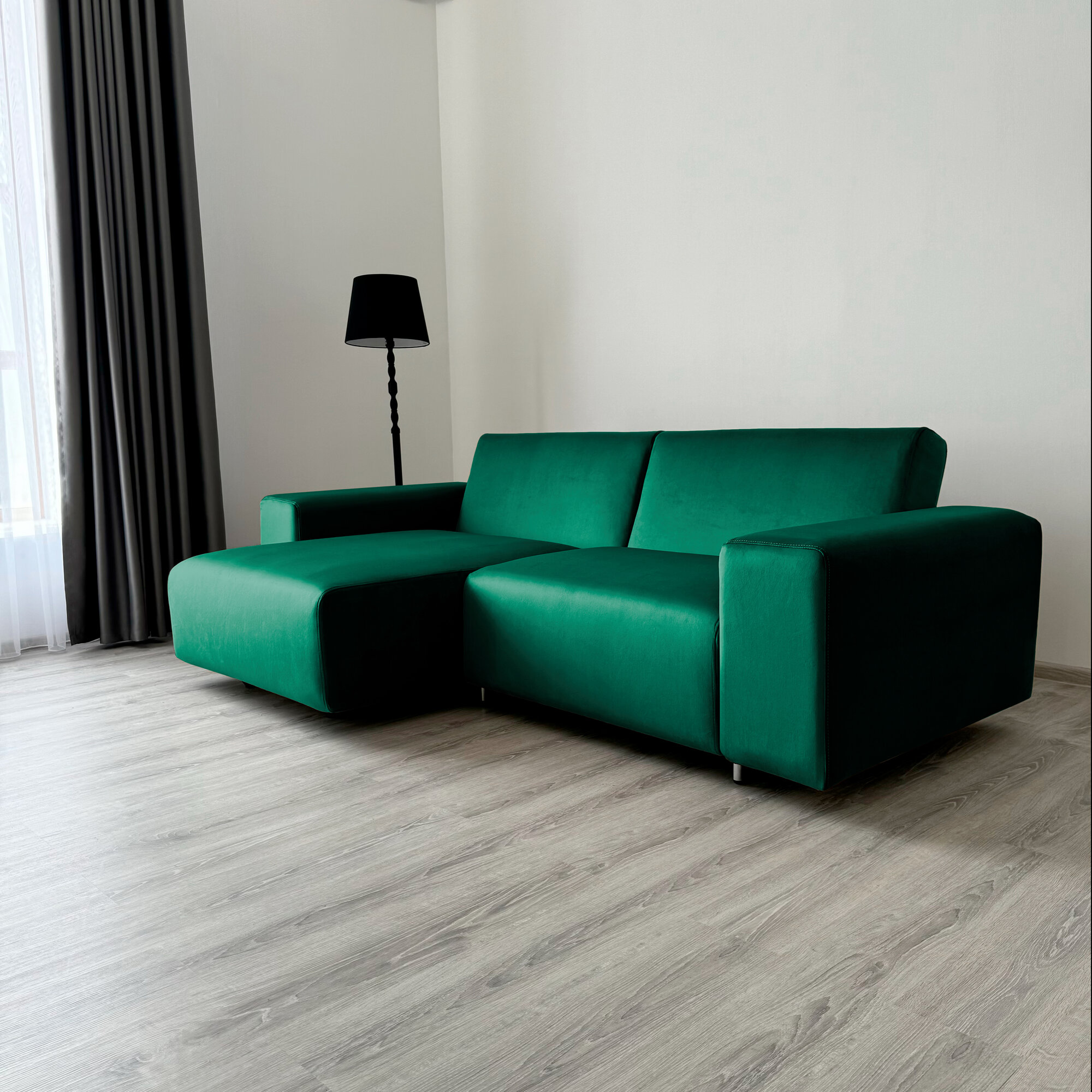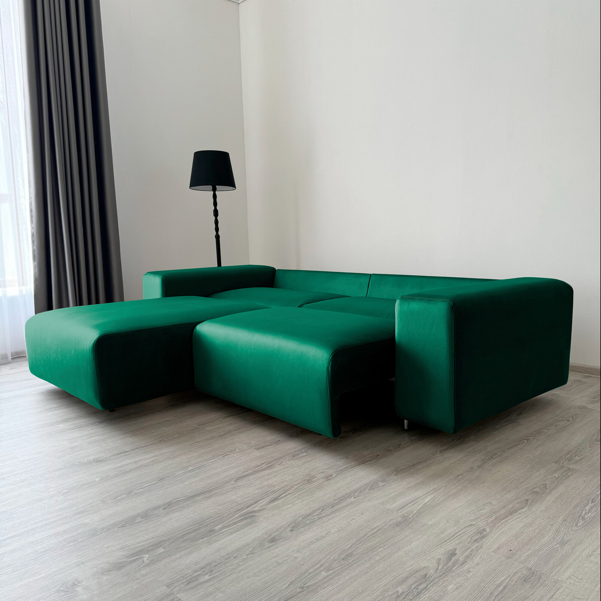 Купить Диван-кровать Redsofa Аурис 260 см изумрудный антивандальный. Раскладной угловой диван со съемными чехлами, для дома и офиса.