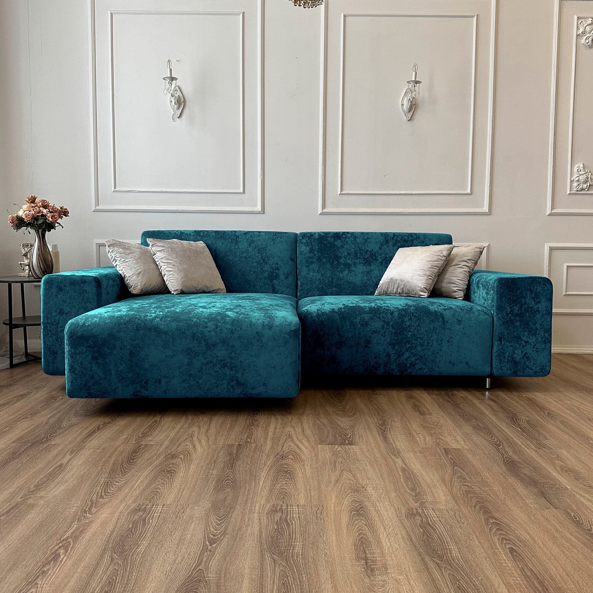 Диван-кровать Redsofa Аурис 260 см бирюзовый Teddi. Раскладной угловой диван со съемными чехлами, для дома и офиса.