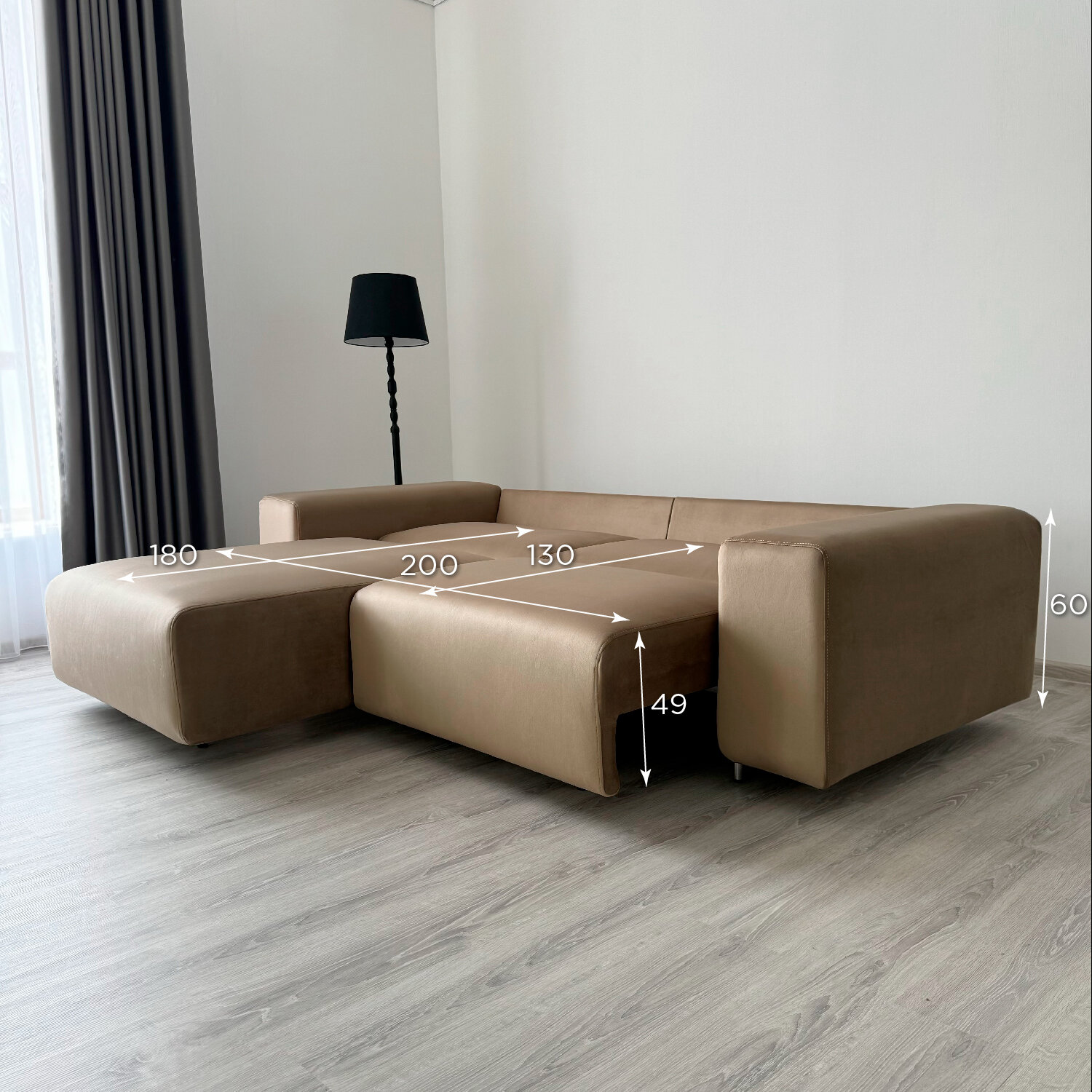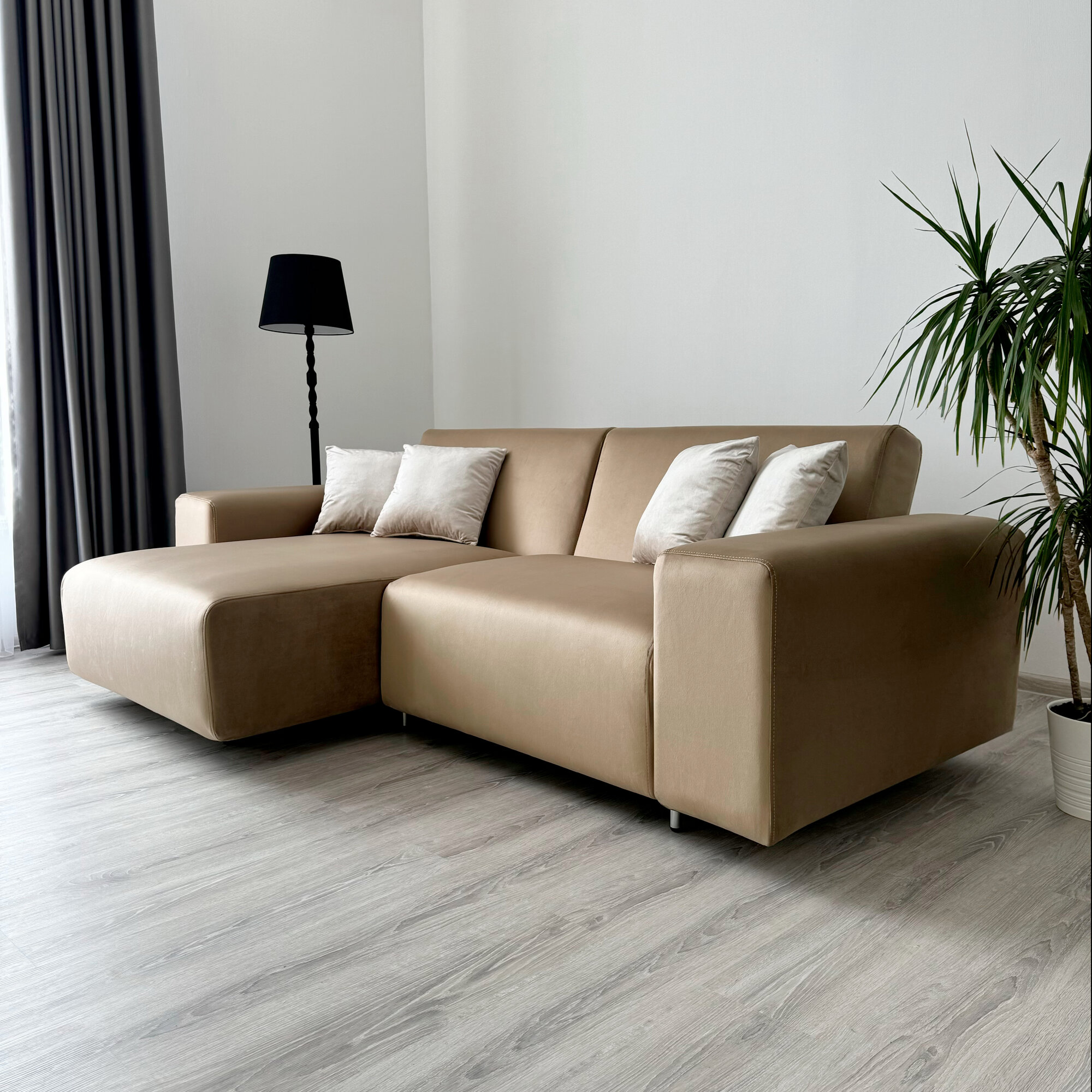 Диван-кровать Redsofa Аурис 260 см темно-бежевый Teddi. Раскладной угловой диван со съемными чехлами, для дома и офиса.