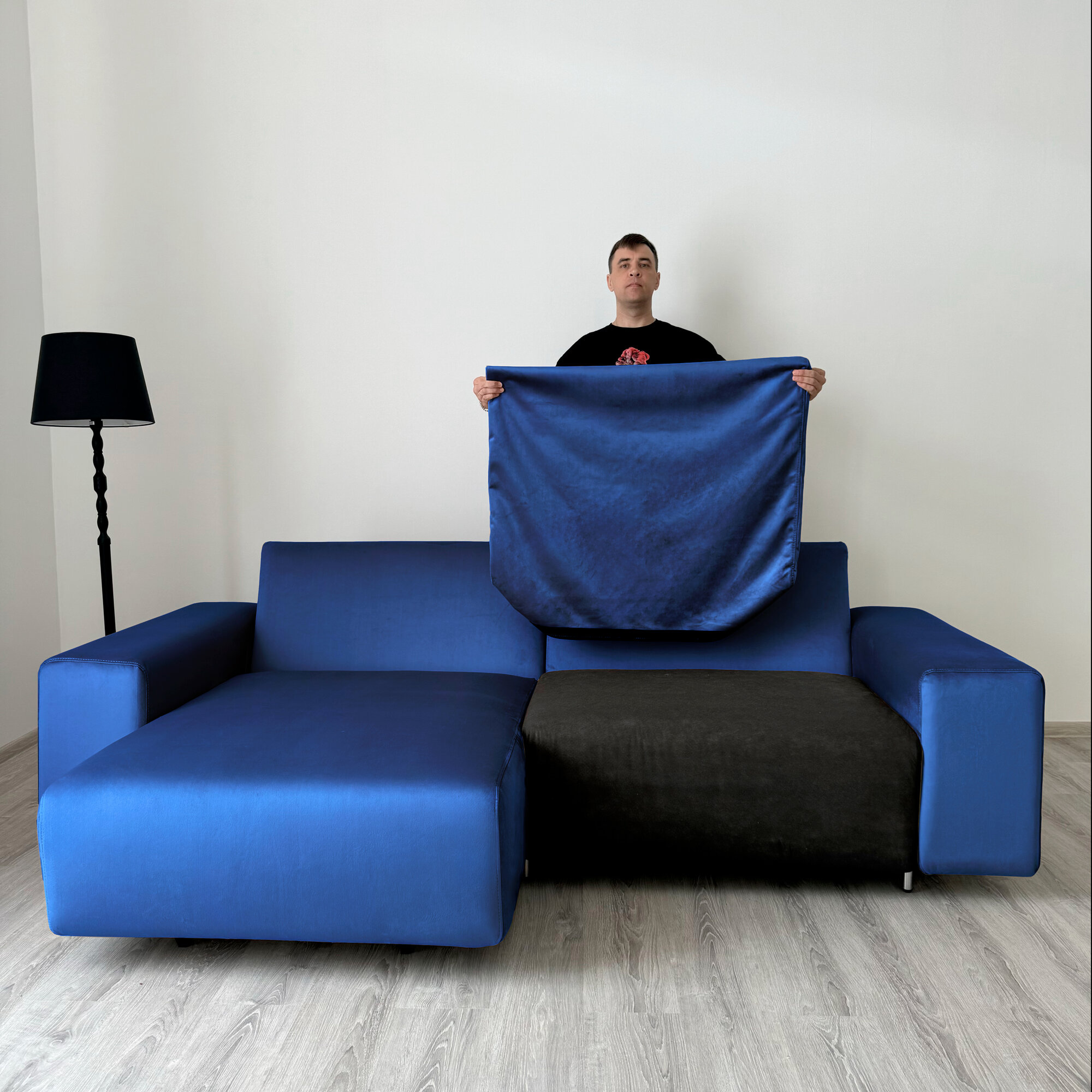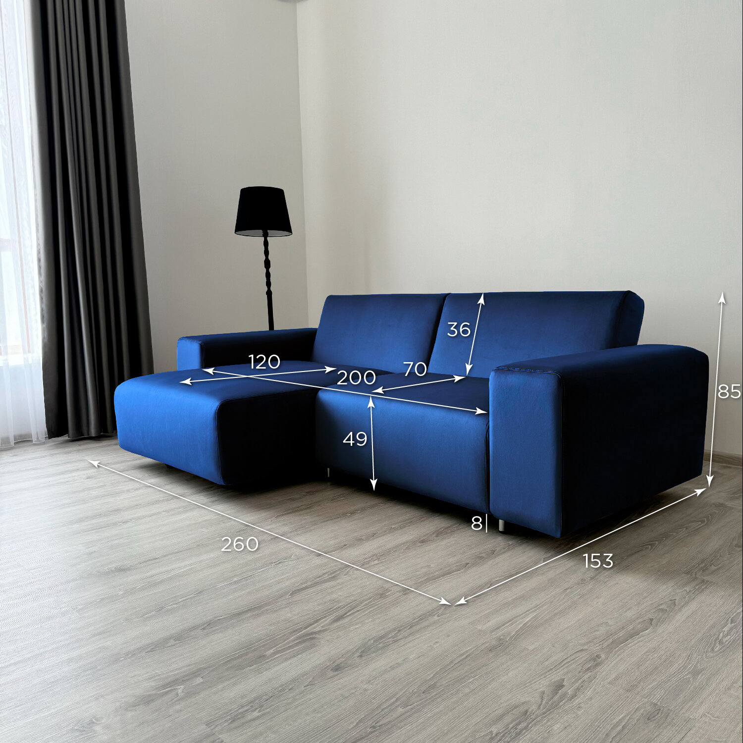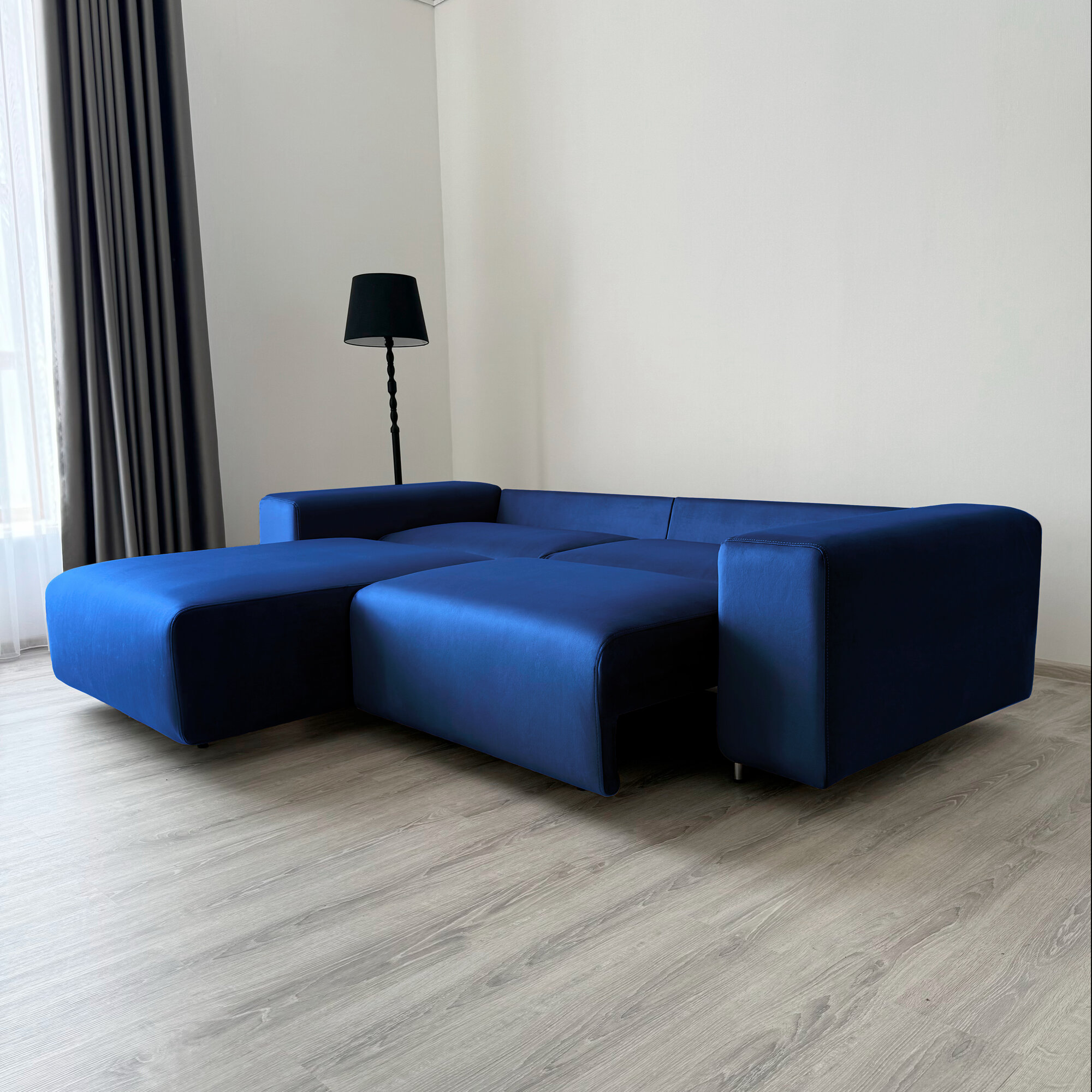 Диван-кровать Redsofa Аурис 260 см синий Teddi. Раскладной угловой диван со съемными чехлами, для дома и офиса.