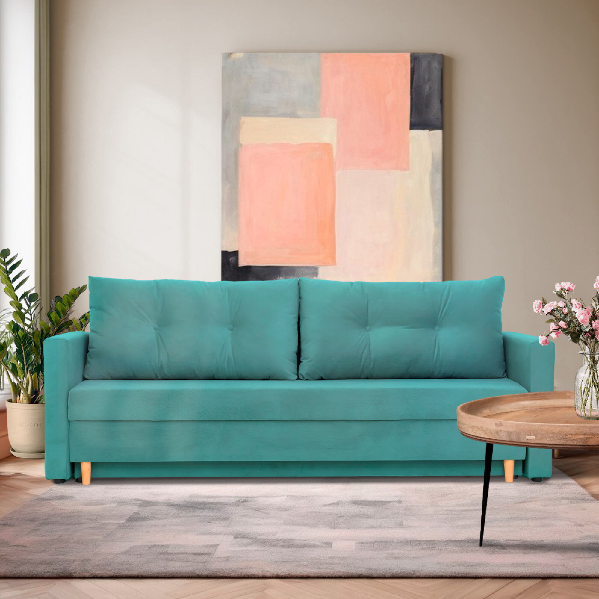 Купить Диван - кровать прямой Киото Лайт, механизм еврокнижка, 212 х 74 х 73 см, Бирюзовый