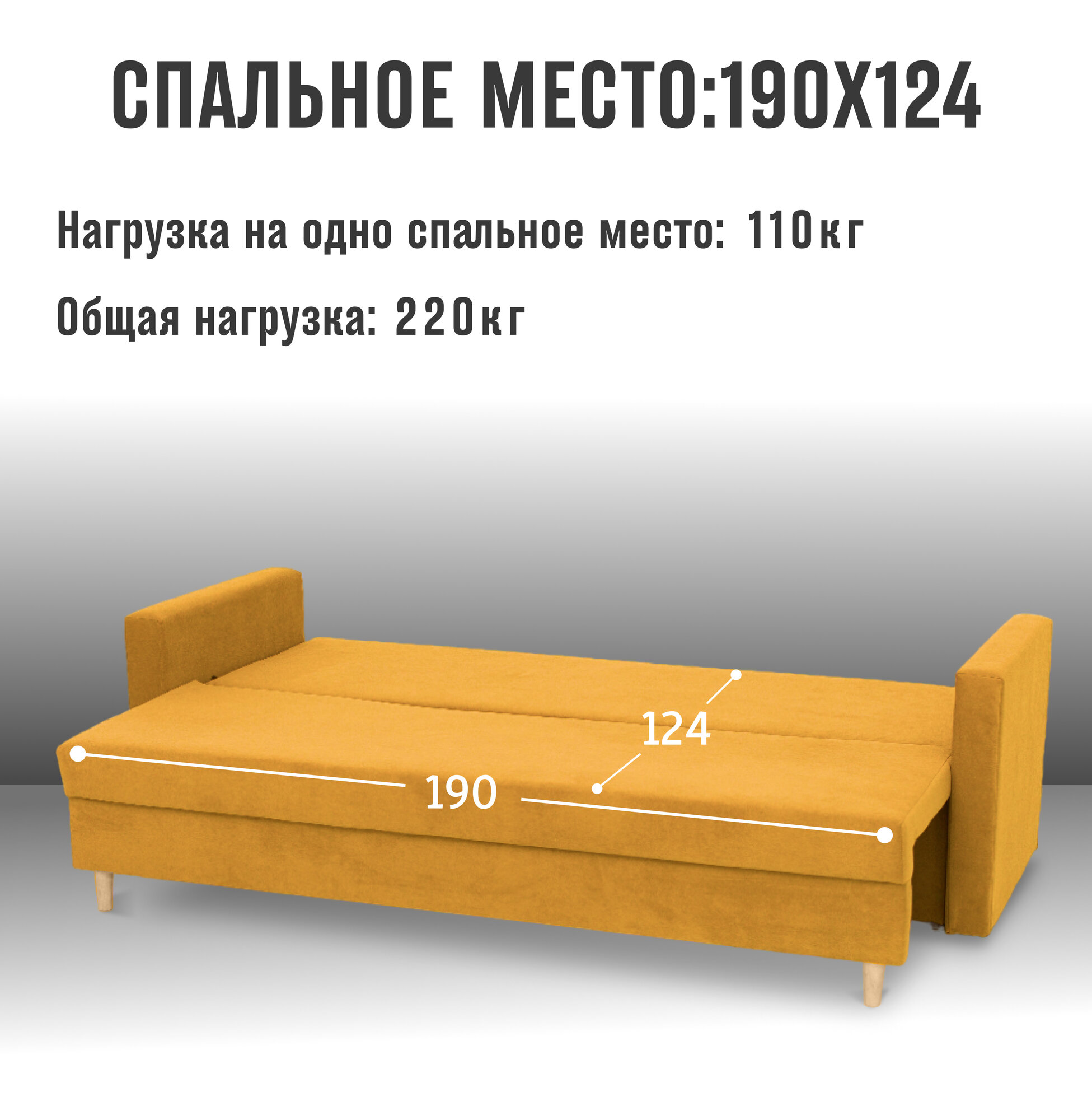 Купить Диван - кровать прямой Киото Лайт, механизм еврокнижка, 212 х 74 х 73 см, Горчичный