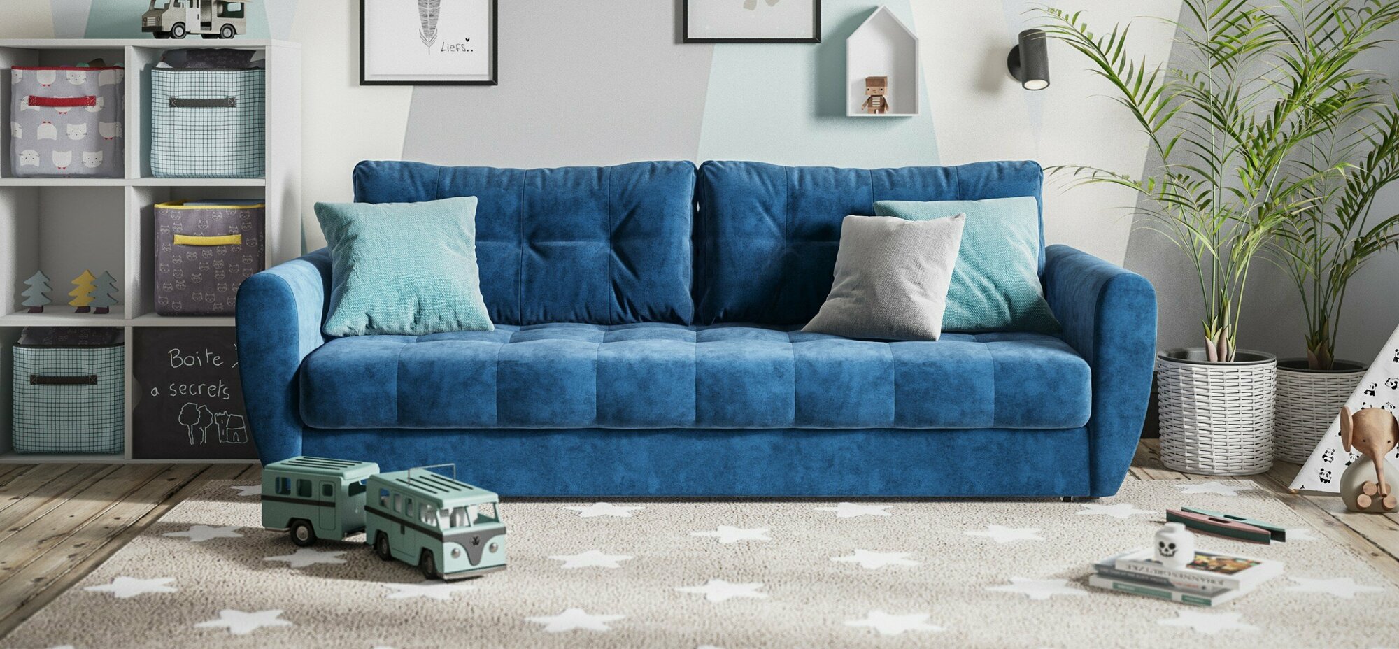 СохранитьДиван-кровать Престон 2.0, с ящиком для хранения, еврокнижка, велюр Monolit, синий, 235х104х93 см интересное:
