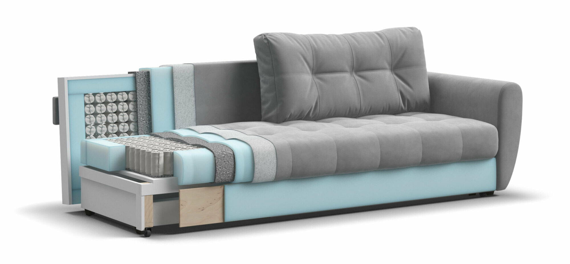Диван-кровать BOSS Compact, выкатной easy roll, рогожка Malmo серый, 167х112х88 см