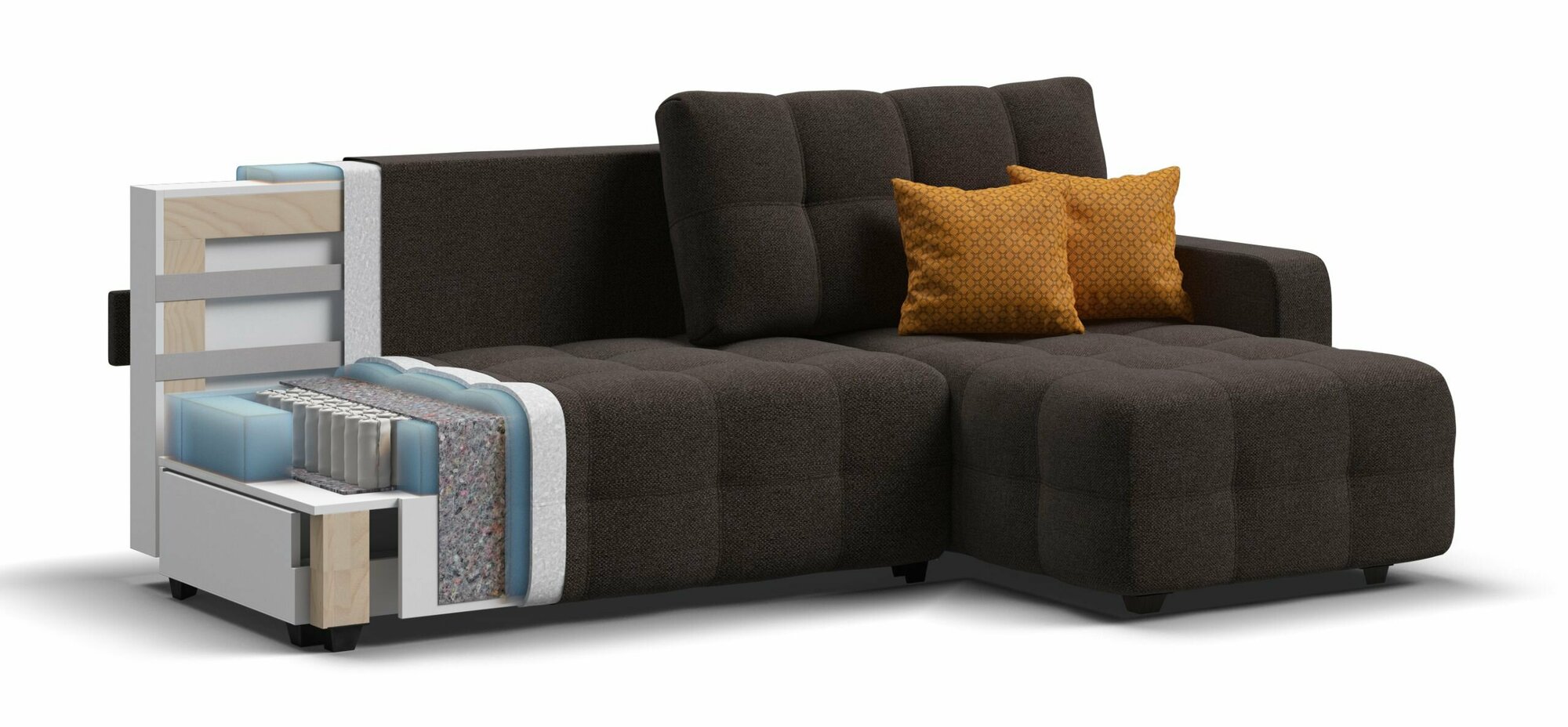 СохранитьУгловой диван-кровать Много Мебели Dandy Euro SE с ящиком для хранения, еврокнижка, рогожка Malmo шоколадный, 235х165х93 см интересное: