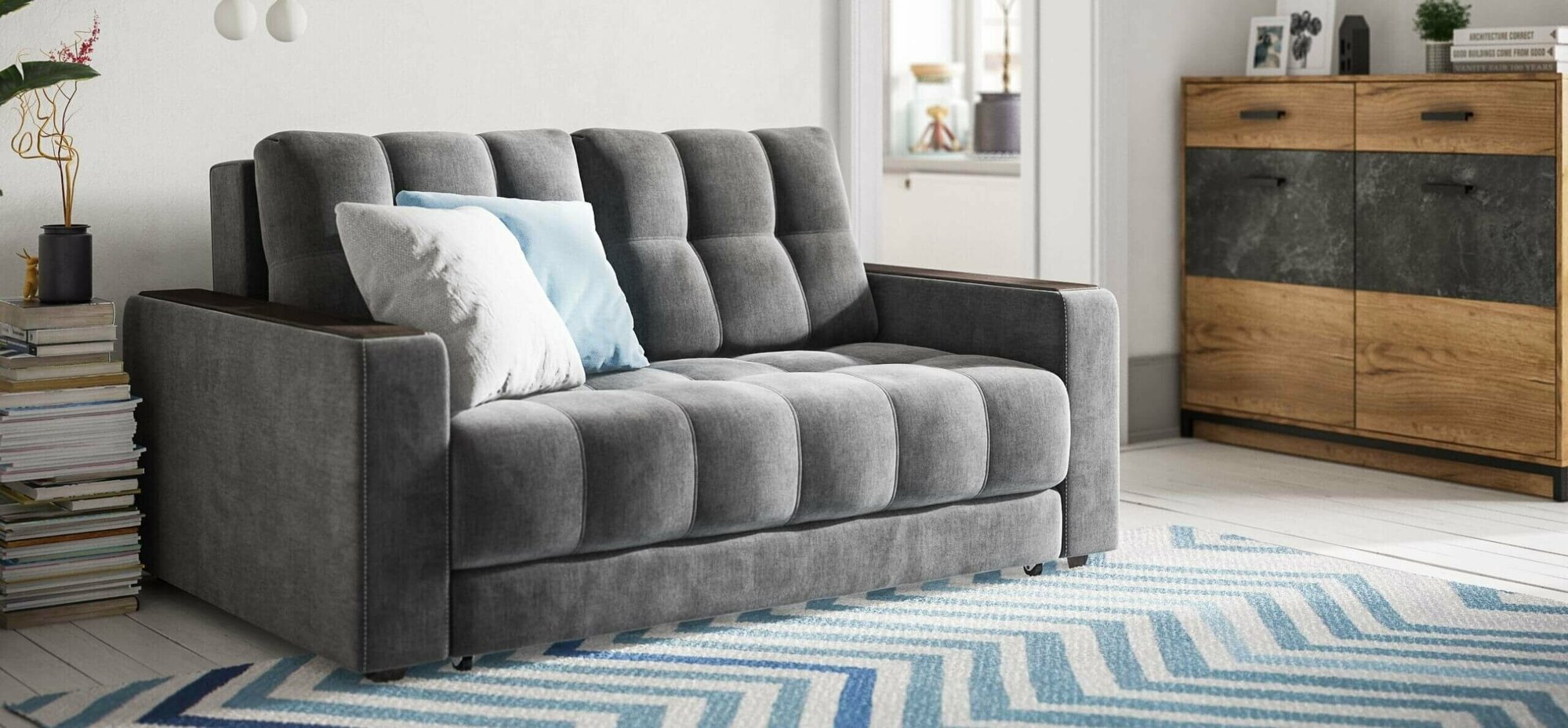 Купить Диван-кровать BOSS Compact, выкатной easy roll, велюр Monolit серый, 167х112х88 см